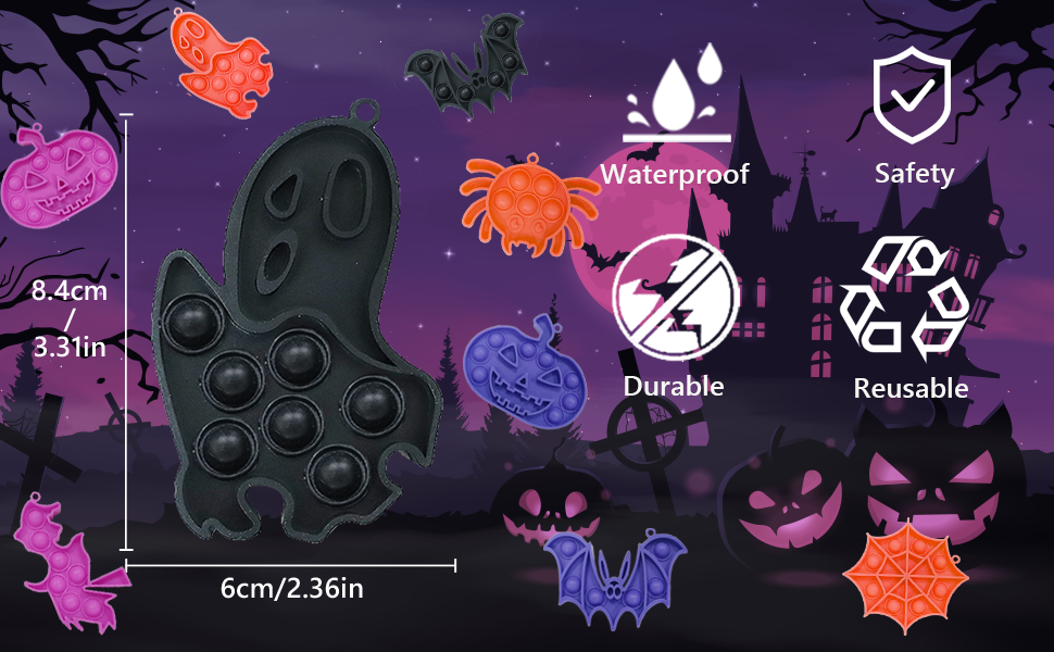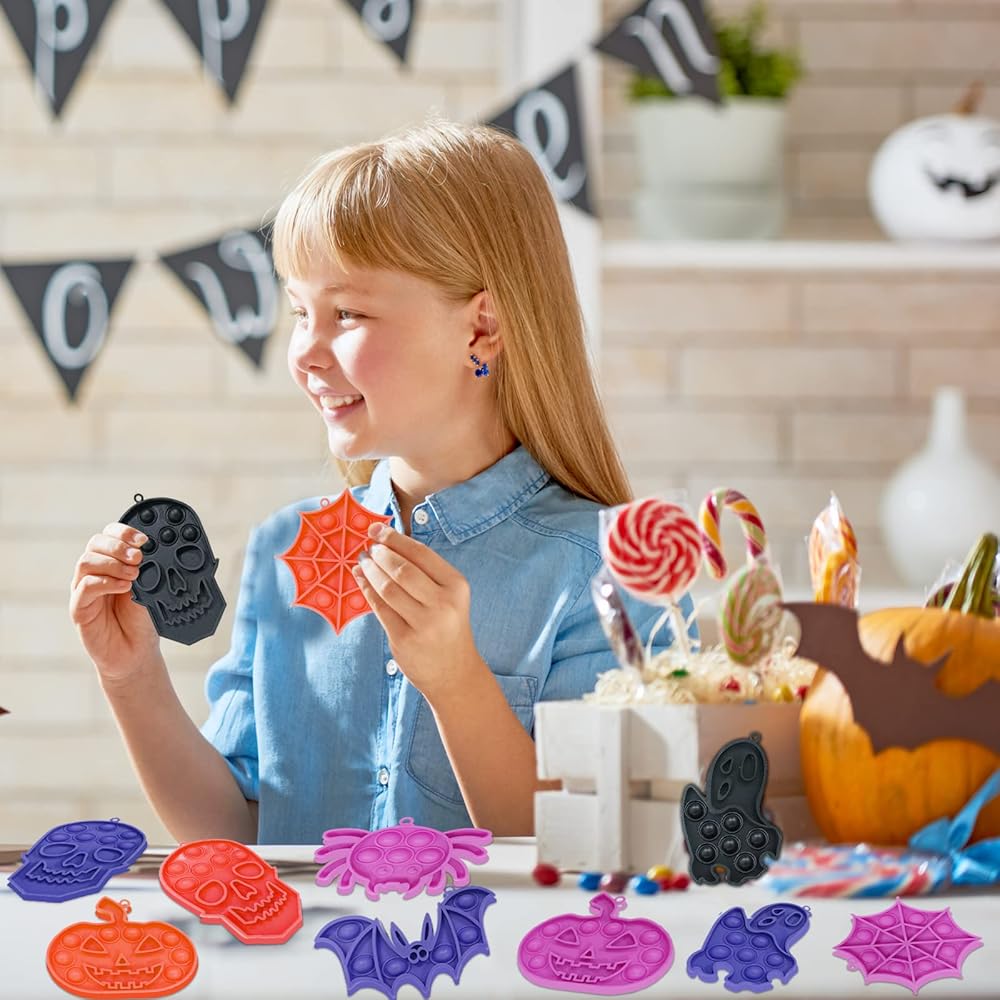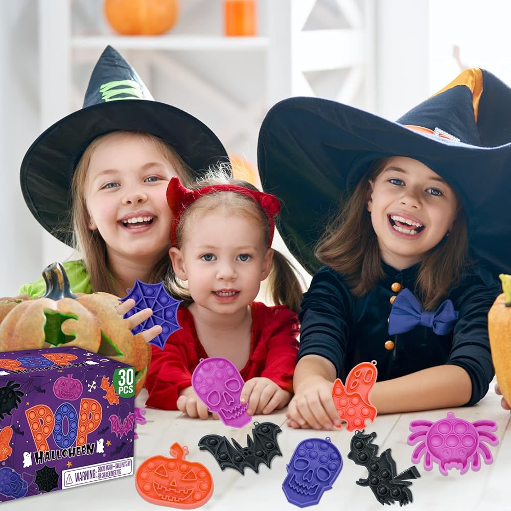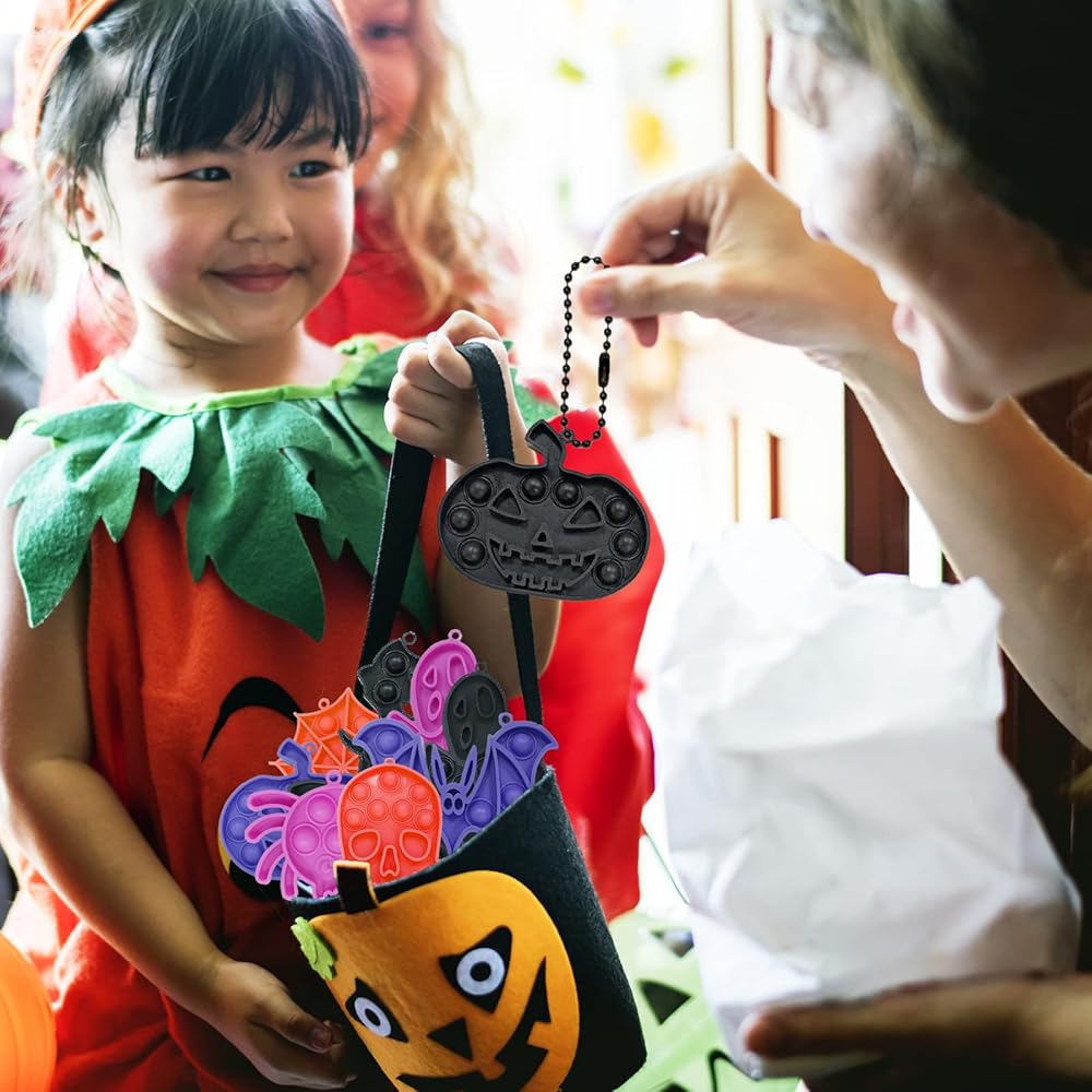 30 حزمة من ألعاب الهالوين الحسية الململة مع سلسلة مفاتيح هدايا حفلات الهالوين للأطفال الأولاد والبنات ألعاب فقاعات الدفع للهالوين بكميات كبيرة من السيليكون لتخفيف التوتر