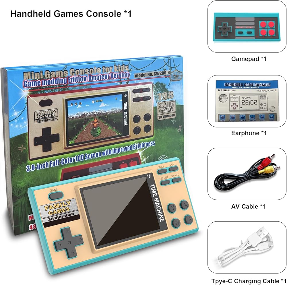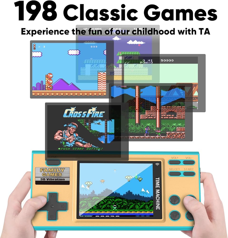 198 لعبة ألغاز غير عنيفة: وحدة التحكم في الألعاب المحمولة تحتوي على 198 لعبة أطفال لا تحتوي على عنف، يمكن لعب الألعاب دون تكرار، مما يعيدك إلى متعة الطفولة.