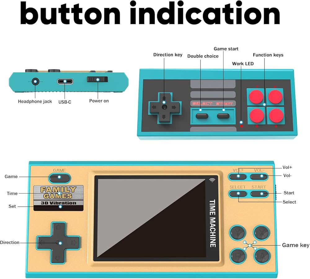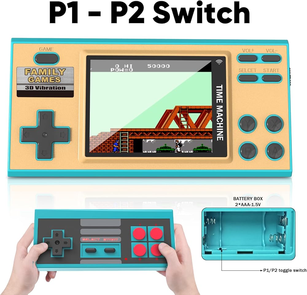 أركيد صغير محمول للسفر: وحدة التحكم في ألعاب الجيب المحمولة باليد هذه رفيعة وخفيفة الوزن، وسهلة الحمل أثناء التنقل، ويمكنك الاستمتاع بألعاب طفولتك في القطار أو الطائرة أو الحافلة.