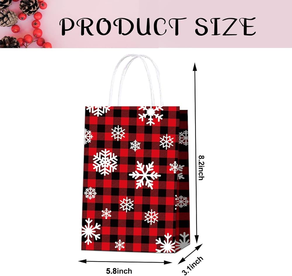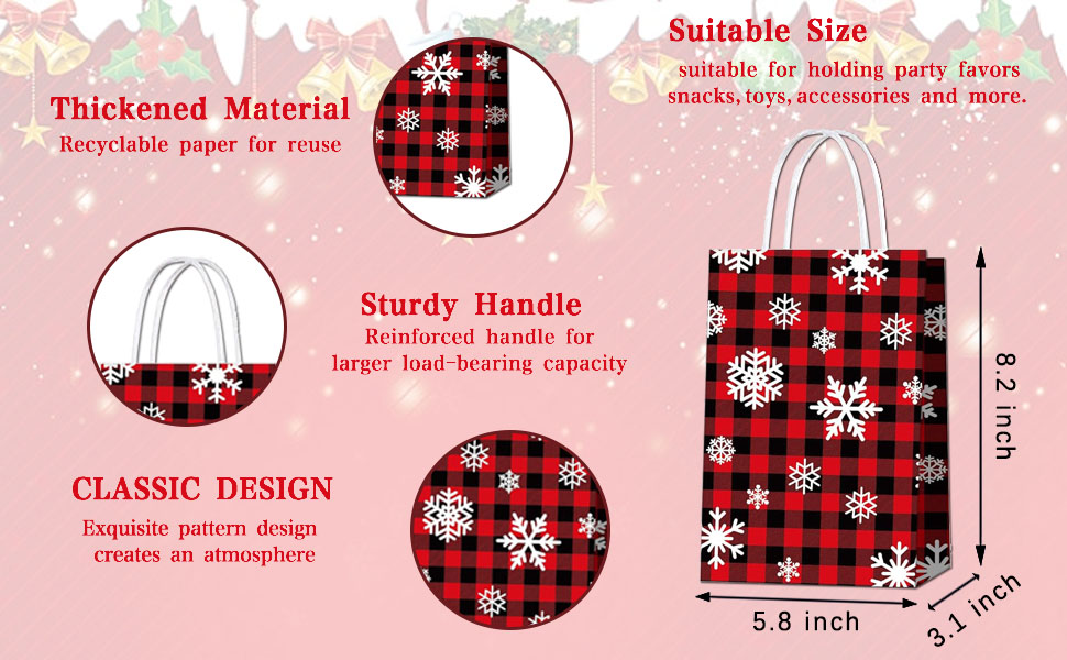 ★الأبعاد: أكياس هدايا الثلج المنقوشة باللونين الأحمر والأسود بقياس 8.2 × 5.8 × 3.1 بوصة.