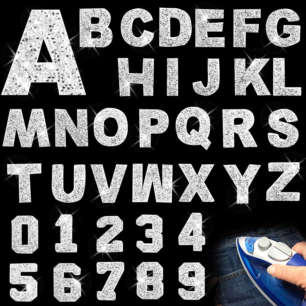 رقع وفيرة من حجر الراين: 26 رقعة حروف من A إلى Z و10 رقع أرقام من 0 إلى 9، أنماط مختلفة، يمكنك مزج ومطابقة الحروف أو الأرقام المختلفة معًا.