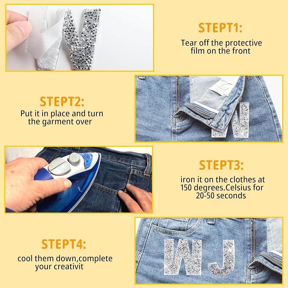 جودة عالية: رقعة الحروف ذات الختم الساخن مصنوعة من أحجار الراين الراتنج مع لاصق يذوب بالحرارة على الظهر، والذي يتميز بقدرة التصاق قوية، ويسهل كيه.