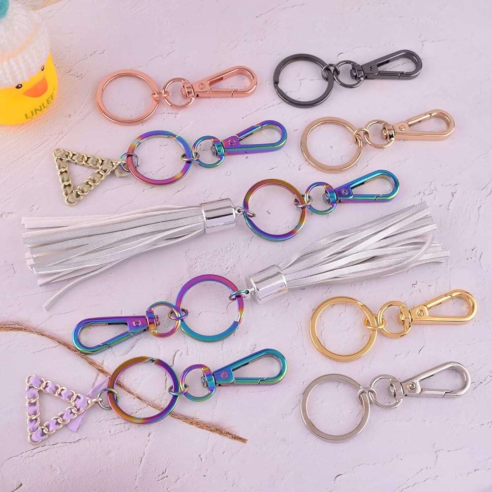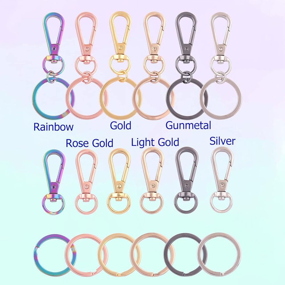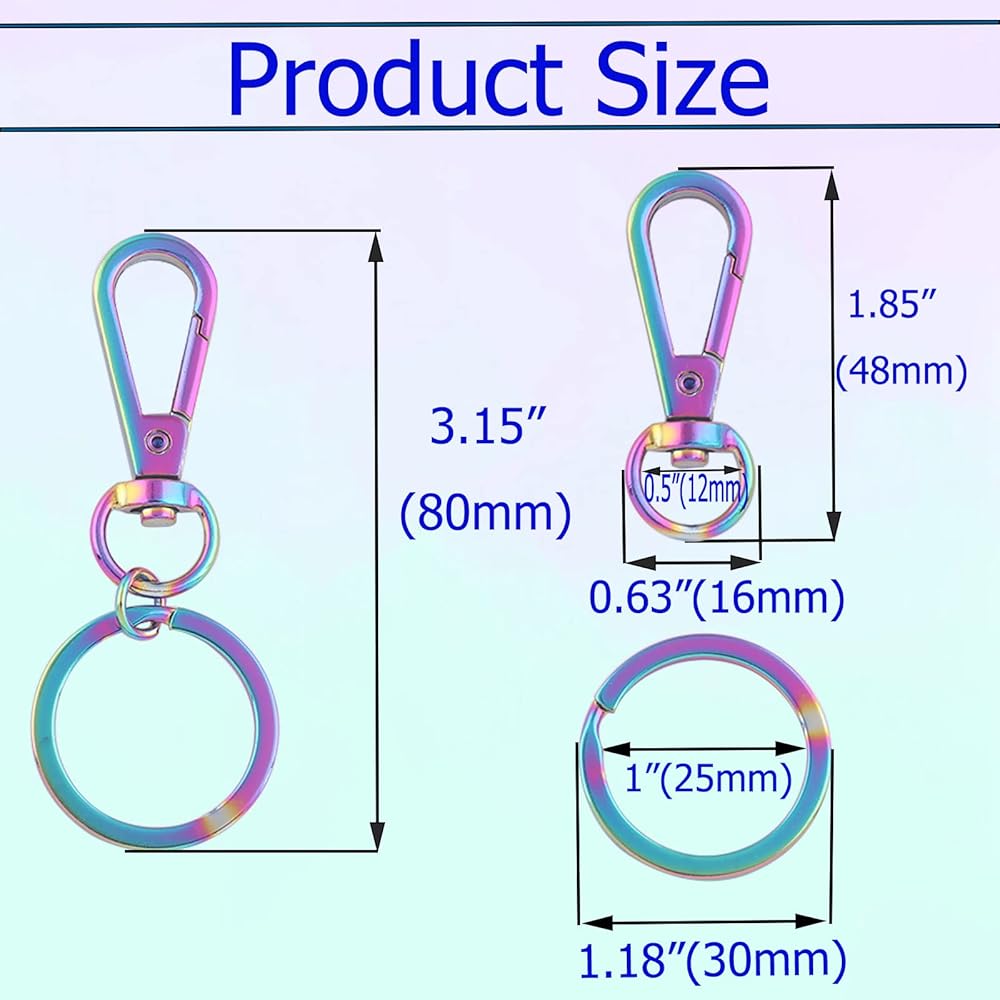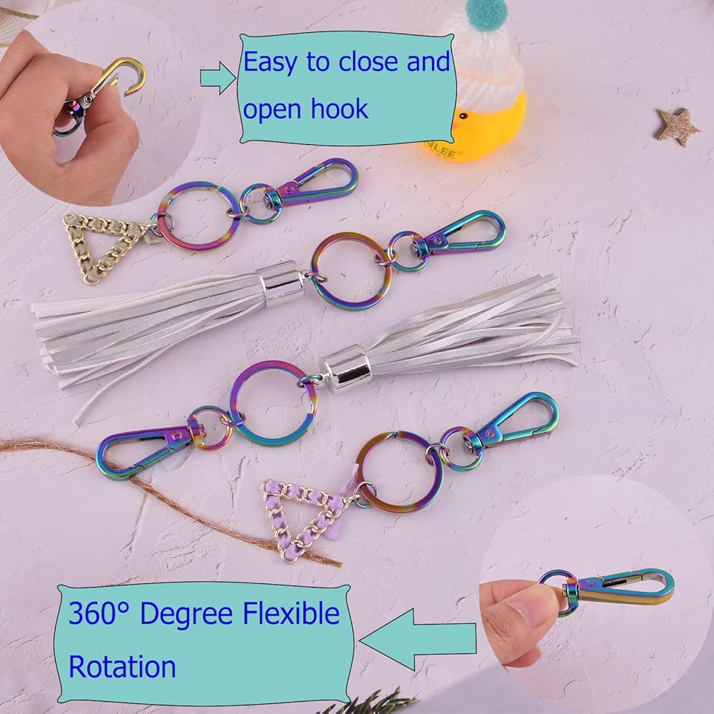 【مواد عالية الجودة】مشابك الحبل الدوار وحلقات سلاسل المفاتيح مصنوعة من سبائك الزنك (مشابك دوارة) ومادة الحديد (حلقة المفاتيح)؛ خالية من الرصاص وصديقة للبيئة، ولا تتشوه، ومتينة، ومضادة للصدأ، وسطح أملس قوي، وآمنة للاستخدام. يمكن الحفاظ على اللون لفترة طويلة.