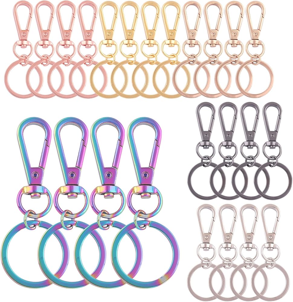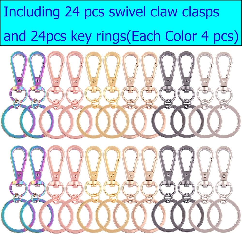 تشتمل العبوة على: مشابك مخلب سرطان البحر الدوارة مع سلسلة مفاتيح تحتوي على ما يلي: 24 قطعة خطافات دوارة و24 قطعة من حلقات المفاتيح، إجمالي 48 قطعة، إذا اخترت مزج الألوان، فستحصل على 4 قطع خطافات دوارة و4 قطع حلقات مفاتيح في كل لون. كمية كافية ولون كلاسيكي كافٍ لاحتياجاتك العادية، وهو خيار مثالي لحرف المجوهرات التي تصنعها بنفسك.