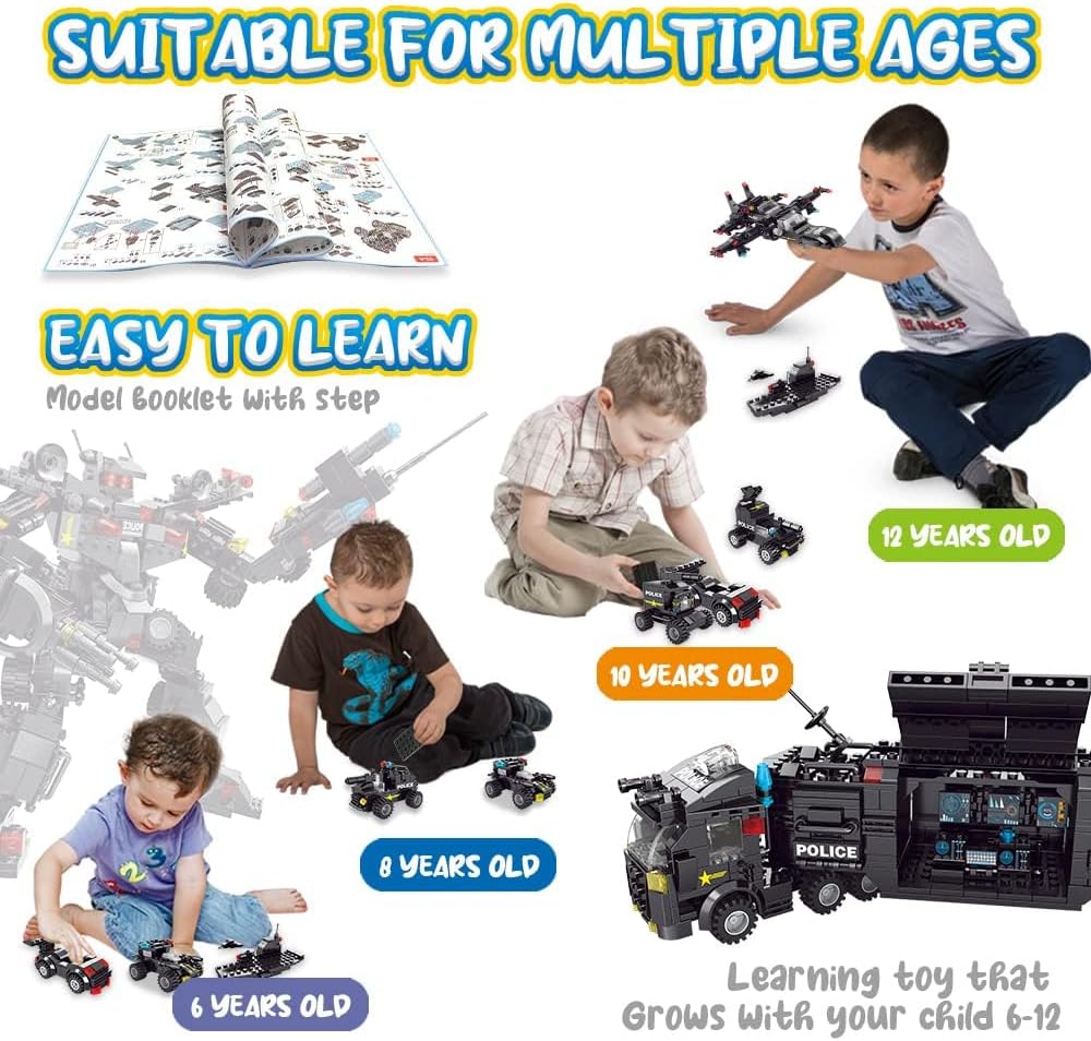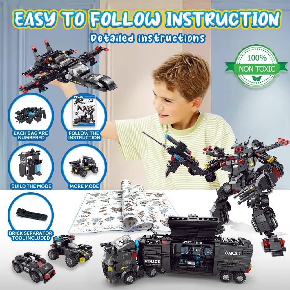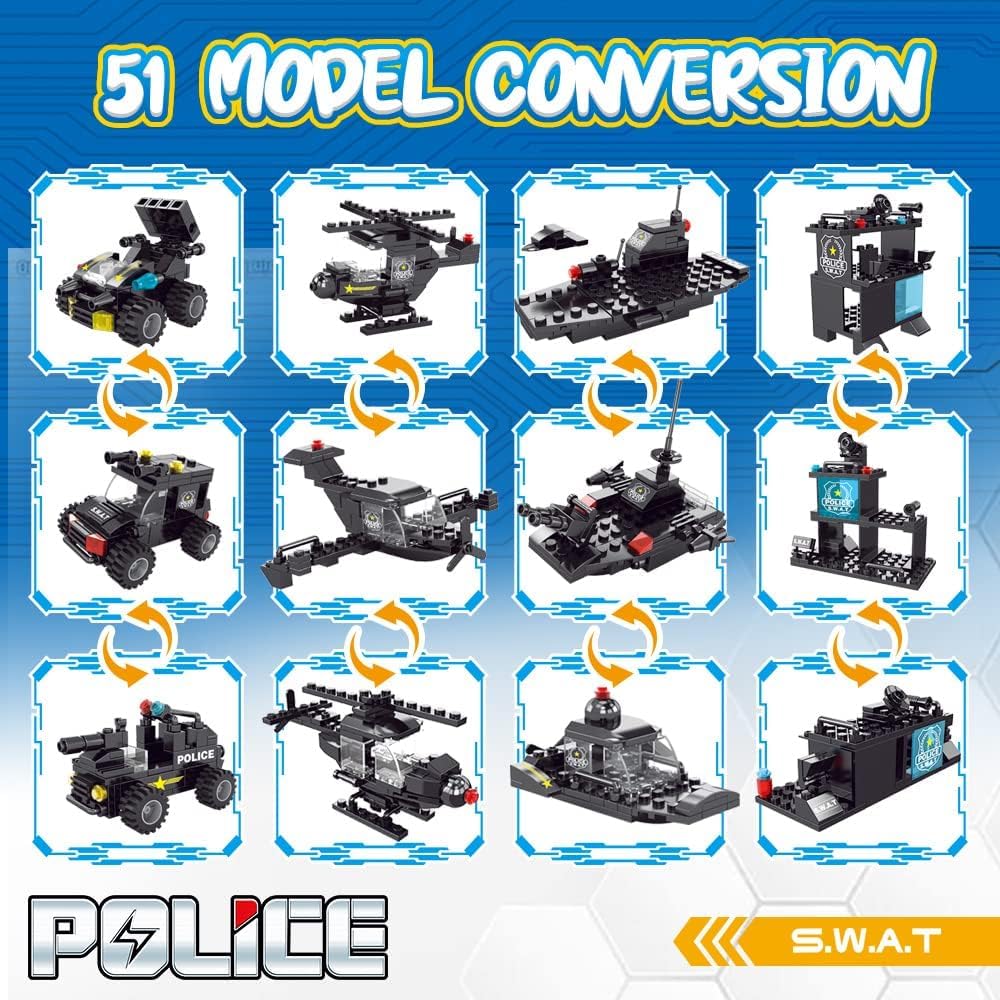 • 【51 نموذجًا في المجمل】700 قطعة من مجموعات التركيب للأولاد من سن 8 إلى 12 عامًا يمكن تركيبها في إجمالي 51 نموذجًا، بما في ذلك 3 نماذج كبيرة من طائرات الهليكوبتر، وشرطة بلاك هوك الخاصة، ومركز قيادة متنقل. إنها مجموعات بناء تعليمية وتعليمية ممتازة للأولاد.