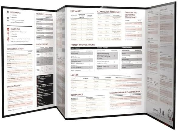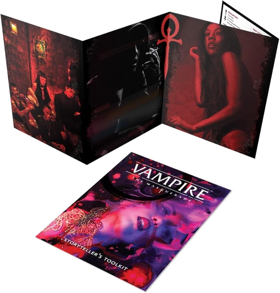 The Vampire الرسمي: تتميز الشاشة التنكرية بالإصدار الخامس من فيلم ذا جودة عالية متعددة وتتميز بالكثير من المحتوى للمساعدة في تشغيل زملائك. يتميز الجزء الخارجي بعمل فني جميل تم تقديمه من مصاصي الدماء: الحفلة التنكرية، بينما يحتوي الغطاء الداخلي على مراجع مفيدة، والطاولات والرسوم البيانية لقائي الحكايات!