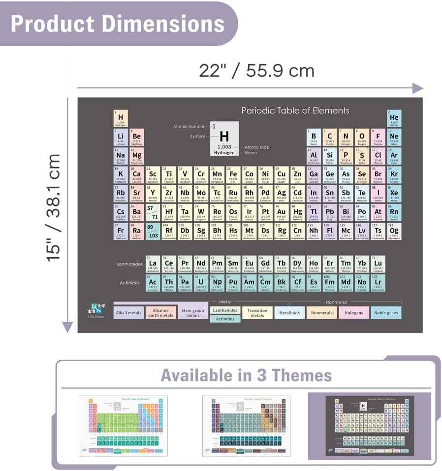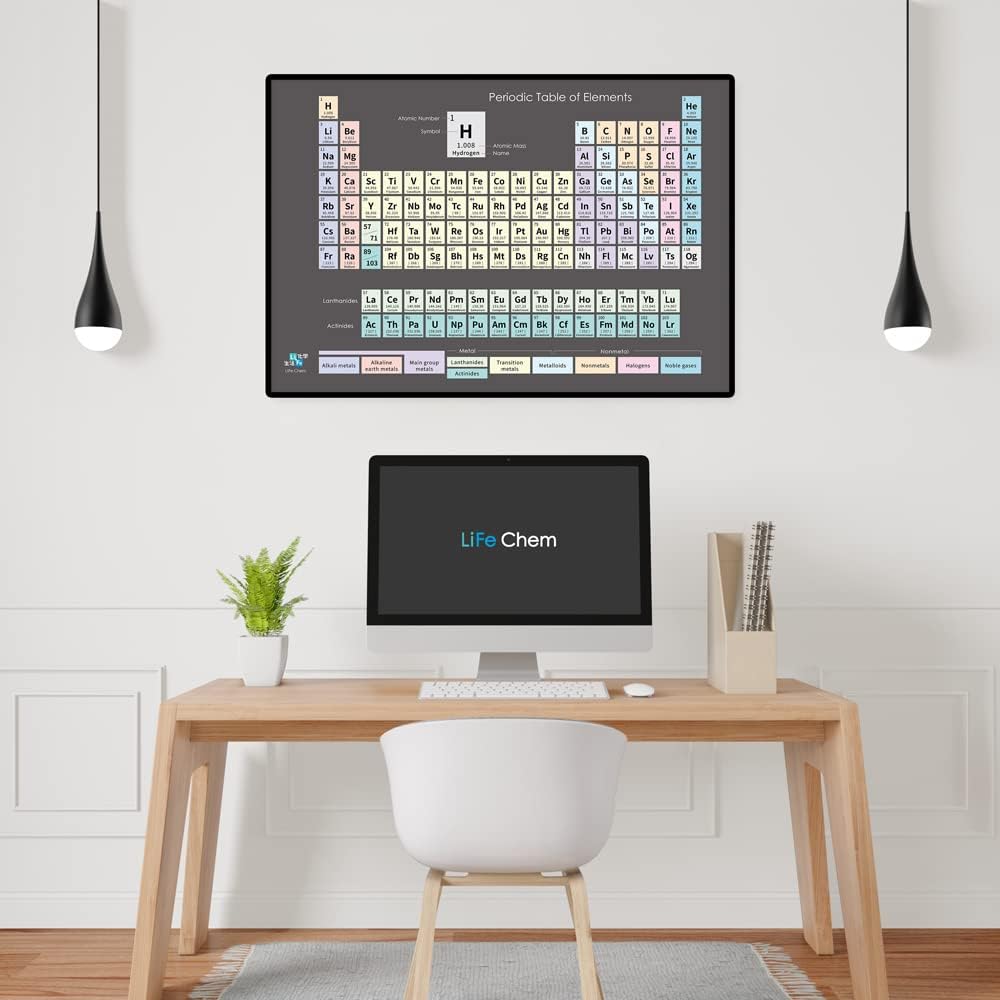 ملصق جدول العناصر الدوري للكيمياء 2022 من LiFe Chem (15 × 22 بوصة) للفصل الدراسي والمختبر وديكور المنزل - تصميم كلاسيكي باللون الرمادي الداكن