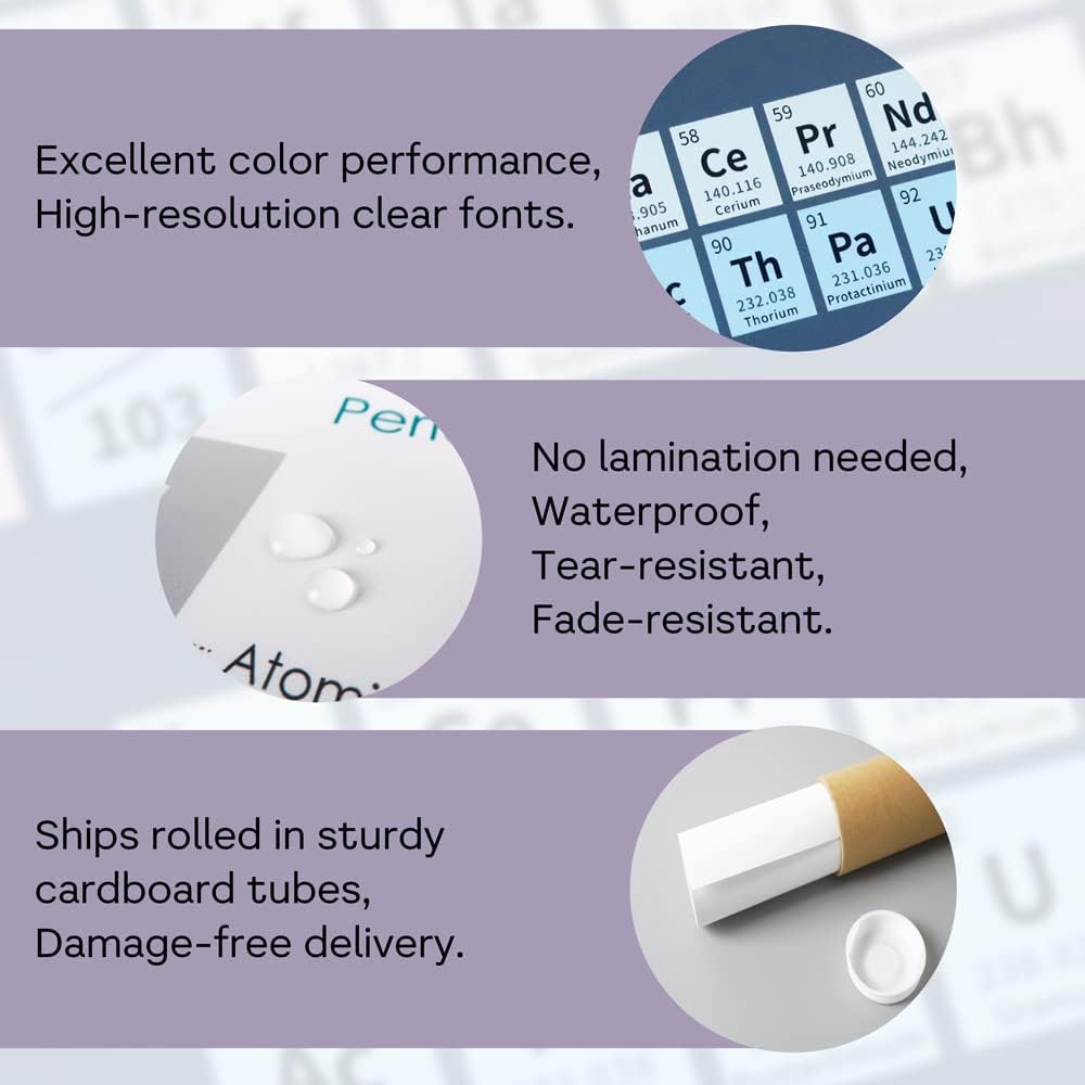 • أفضل تجربة قراءة - مخطط الجدول الدوري الأكثر تحديثًا لعام 2022، والطباعة عالية الجودة والخطوط الواضحة تجعل من السهل قراءته، وهو مرمز بالألوان حتى يتمكن القراء من تمييز الخصائص الكيميائية لكل عنصر بسهولة.