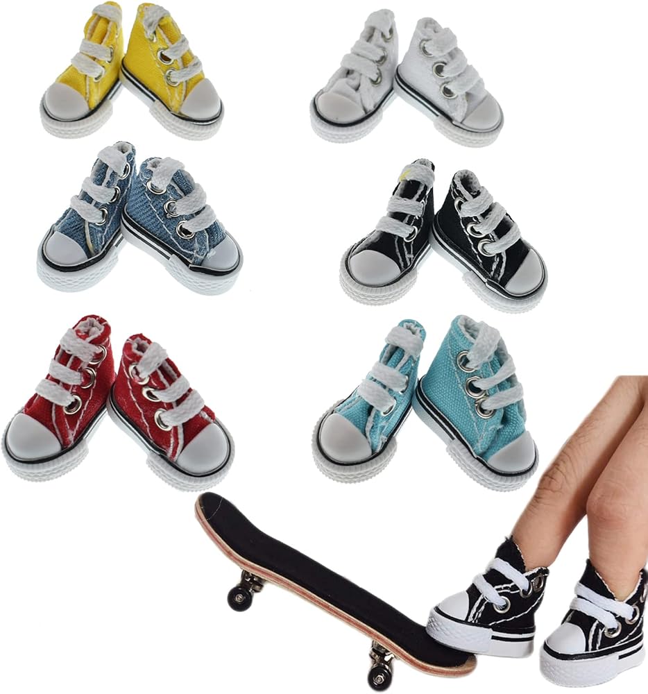 تشمل العبوة: 6 أزواج من أحذية أصابع صغيرة من أجل لوح التزلج في ستة ألوان مختلفة، أزرق، أحمر، أصفر، لون دنيم، أبيض وأسود. يمكنك اختيار اللون الذي تفضلين اللعب بلوح التزلج بالأصابع.