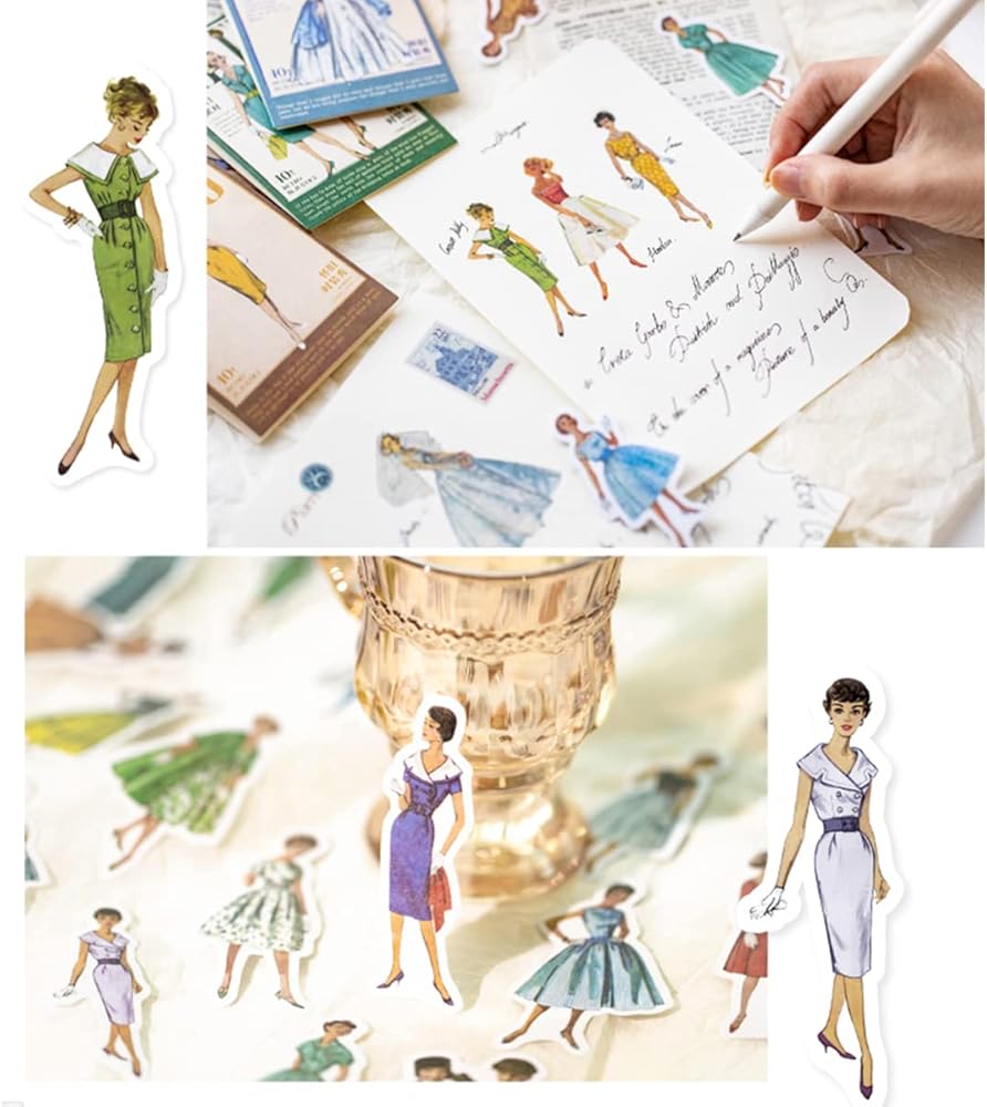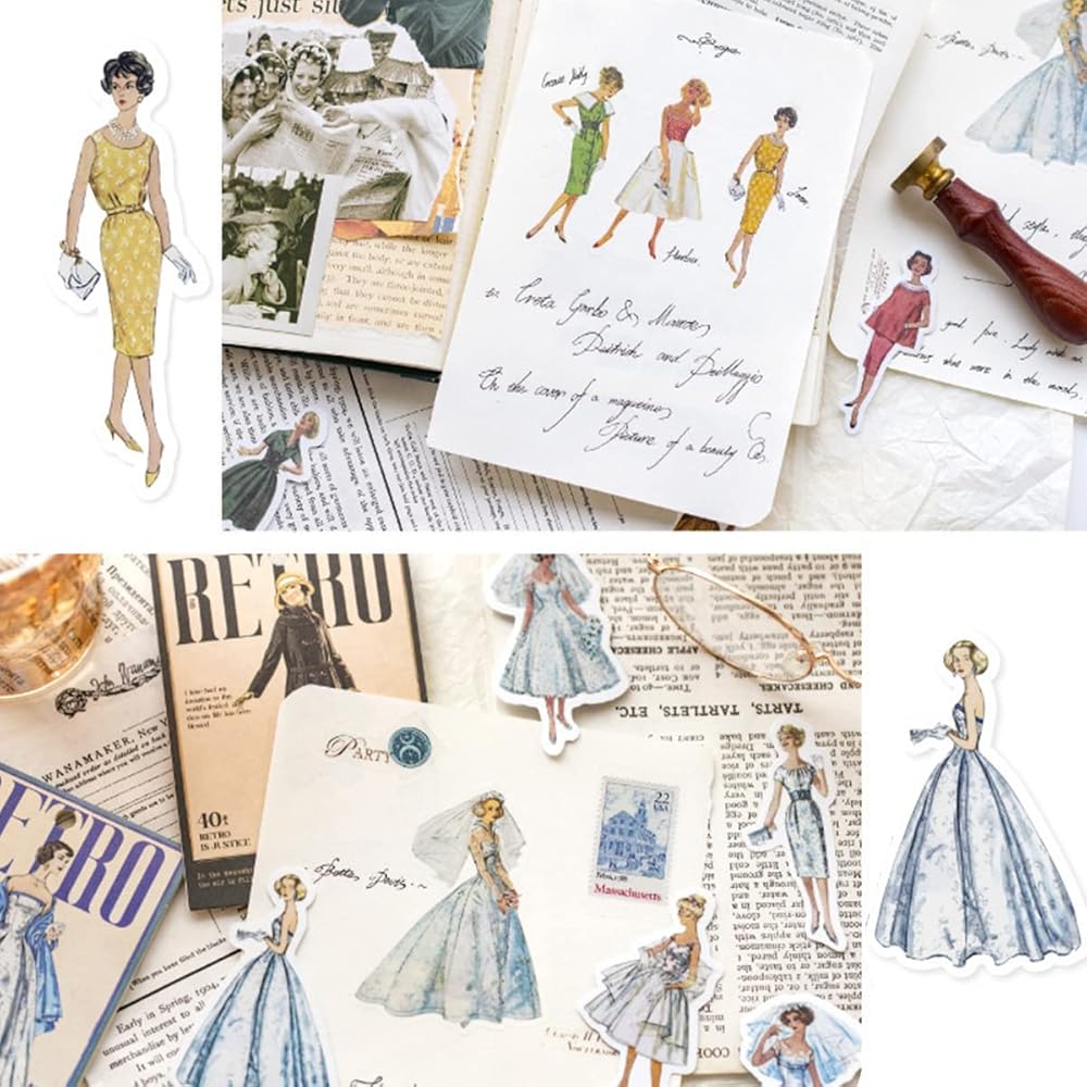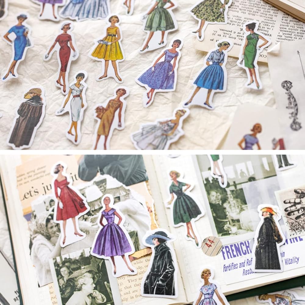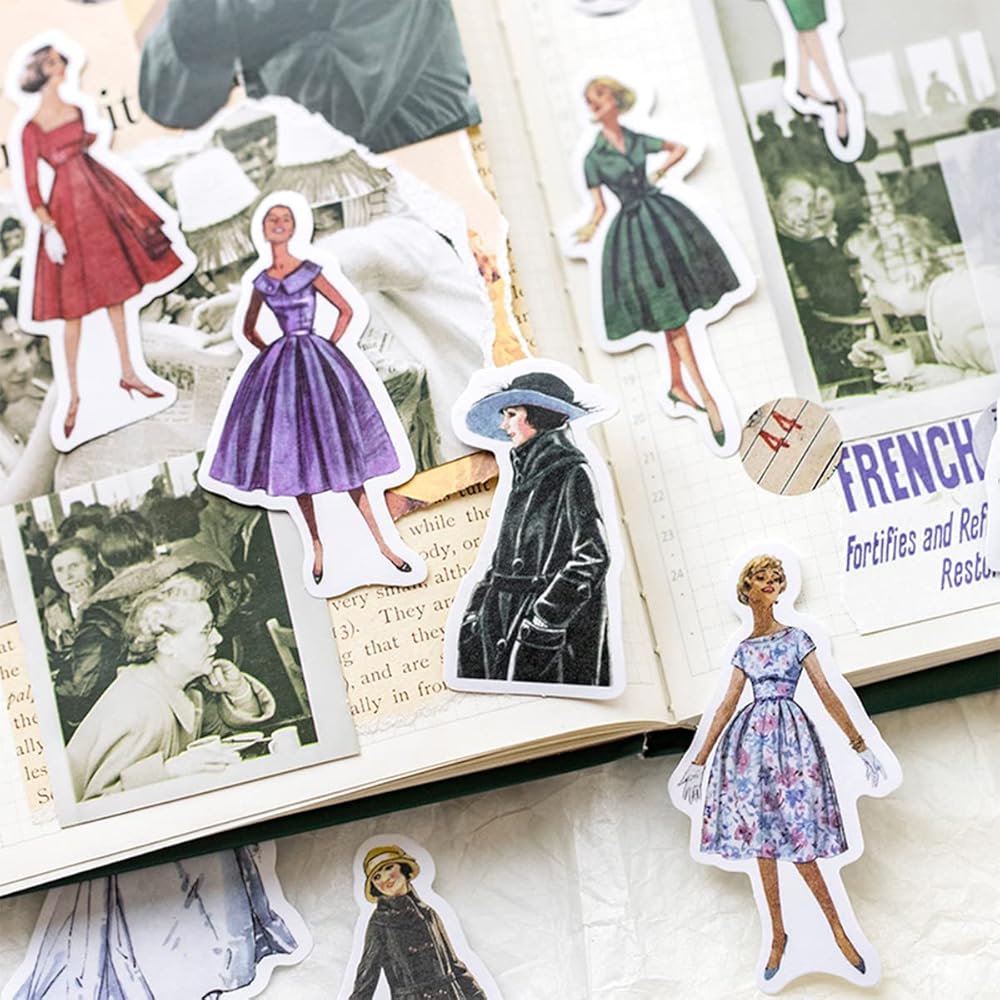 280 قطعة من ملصقات واشي فينتاج بيبوس، 7 انماط عتيقة لسجل القصاصات للنساء لوازم سجل القصاصات للحرف اليدوية والالبوم المغلف
