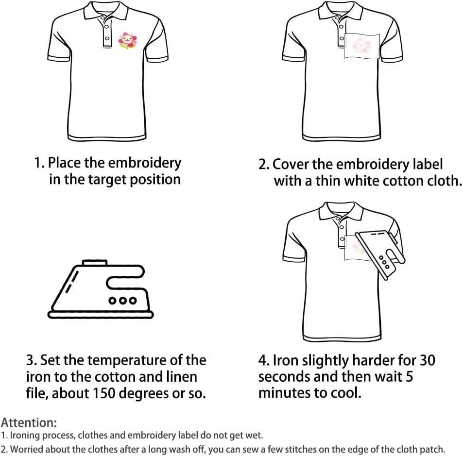 الصناعة: قطعة التطريز مصنوعة من البوليستر المطرز عالي الجودة، والجزء الخلفي ملتصق بمادة لاصقة تذوب الساخنة، وهو مناسب جدًا للكي والخياطة.