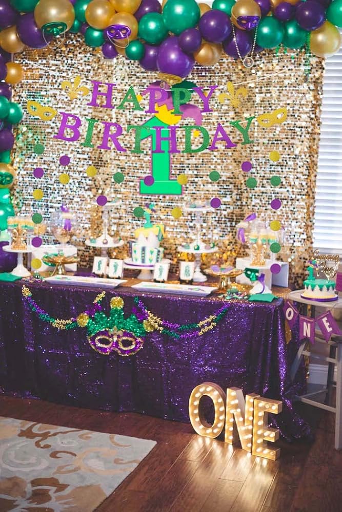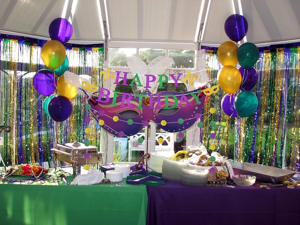 • مخصصة لتزيين حفلات أعياد الميلاد ماردي جرا. إنها نجاح كبير في حفلة عيد ميلادك مع هذه اللافتة.