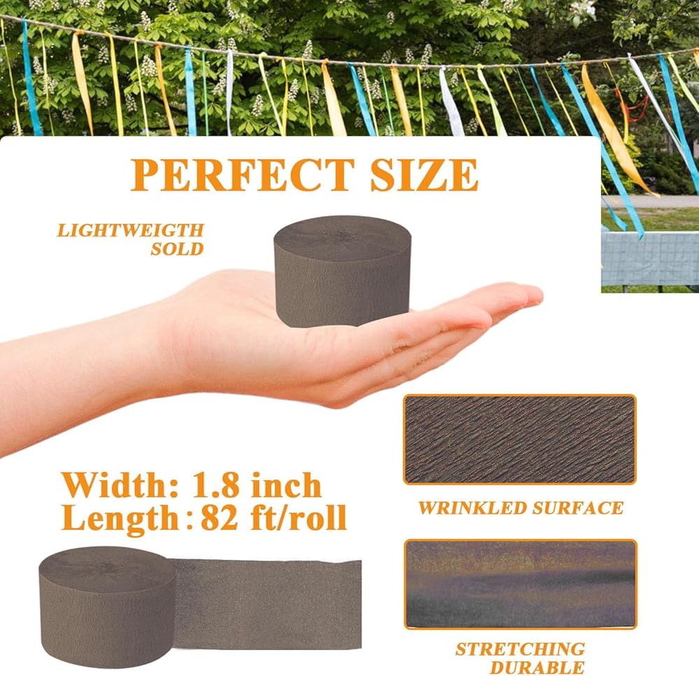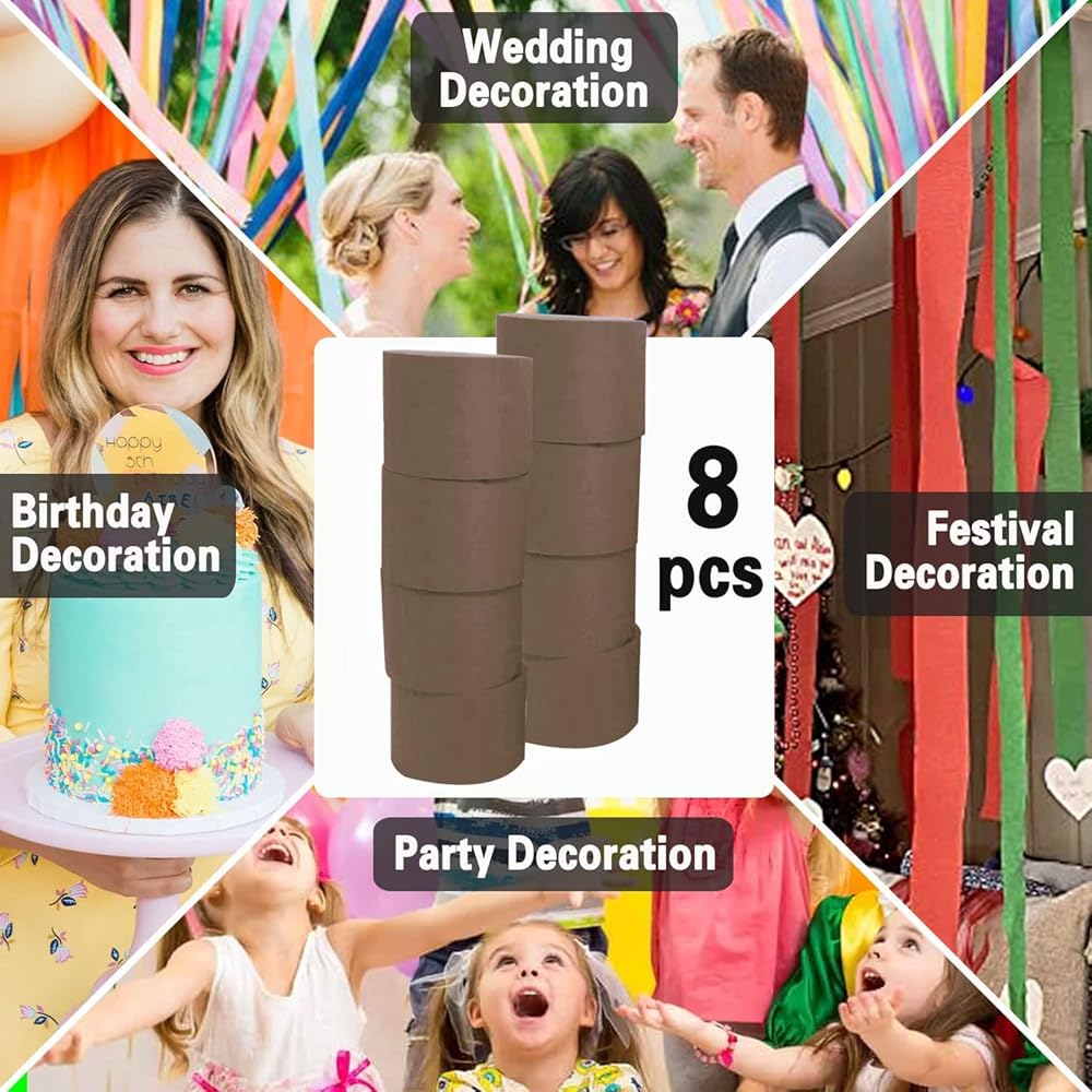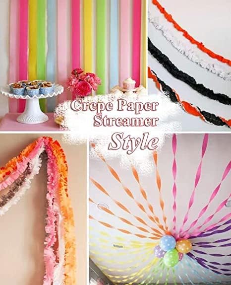 • 【مجموعة 8 لفات من ورق الكريب】كل لفة من شريط الحفلات يبلغ عرضها 1.8 بوصة (4.5 سم) × طولها 82 قدمًا (25 مترًا)، بإجمالي 656 قدمًا (180 مترًا). يضيف شريط الحفلات هذا اللون والحيوية، مما يجعل الحياة اليومية أكثر إثارة للاهتمام.