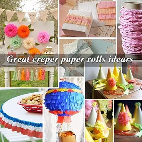 • 【لوازم الحرف اليدوية التي تصنعها بنفسك】تعد لفافات ورق الكريب من المواد اليدوية سهلة الحصول عليها، ولا تنتهي استخداماتها بتغليف الهدايا أو أشرطة الحفلات. استخدم هذه الأوراق متعددة الاستخدامات لإنشاء كرات بوم بومس، وزهور ورقية، ومفضلات الحفلات، والفواكه الورقية، وإكسسوارات للأطفال، وتزيين حامل أقلام الرصاص، والمزيد من الحرف اليدوية الفريدة.