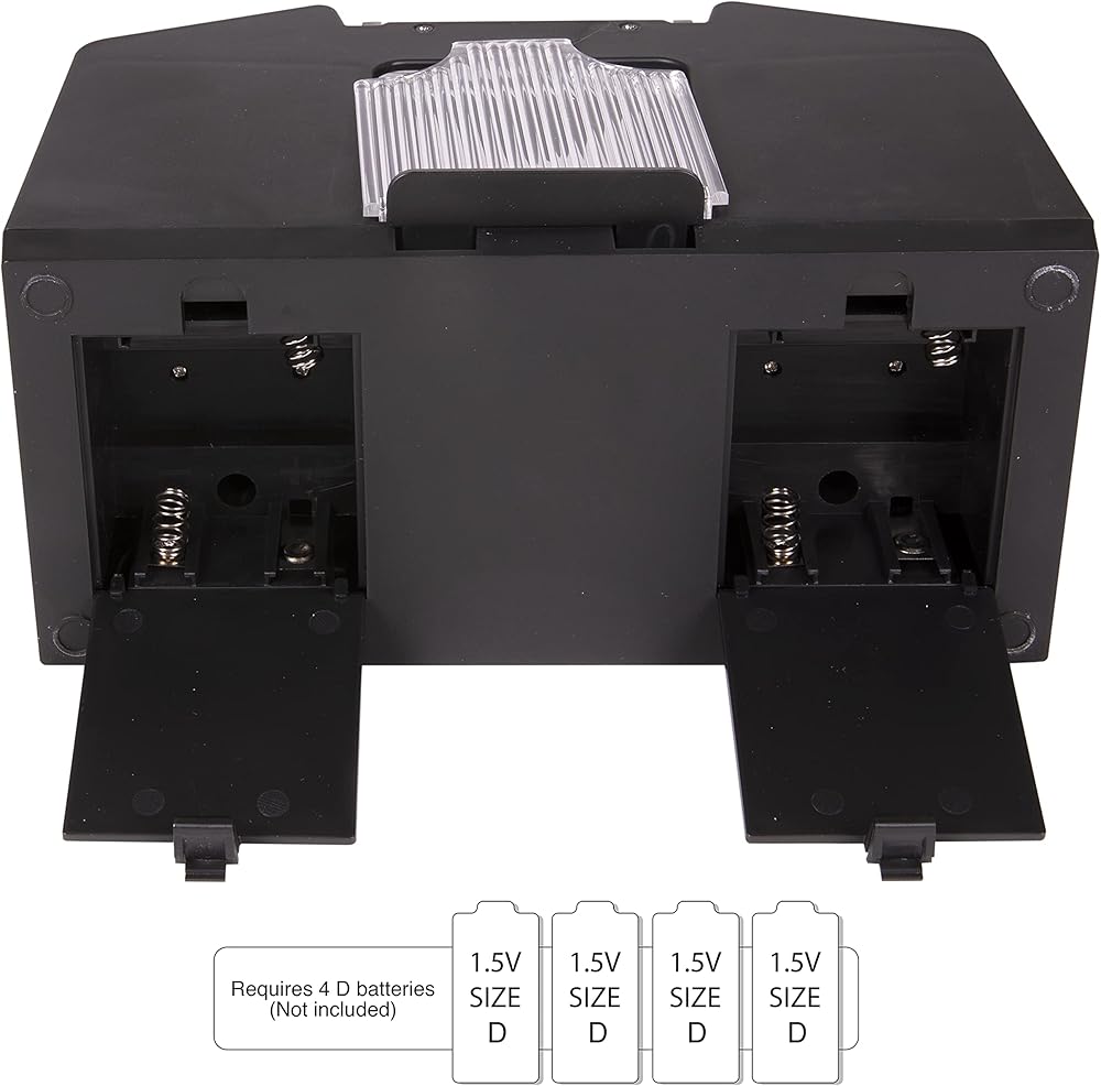 Battery-Operated Devices: These shufflers are Fully Automated. Simply click the tab to proceed. It requires 4 "C" Sized batteries which are not included.