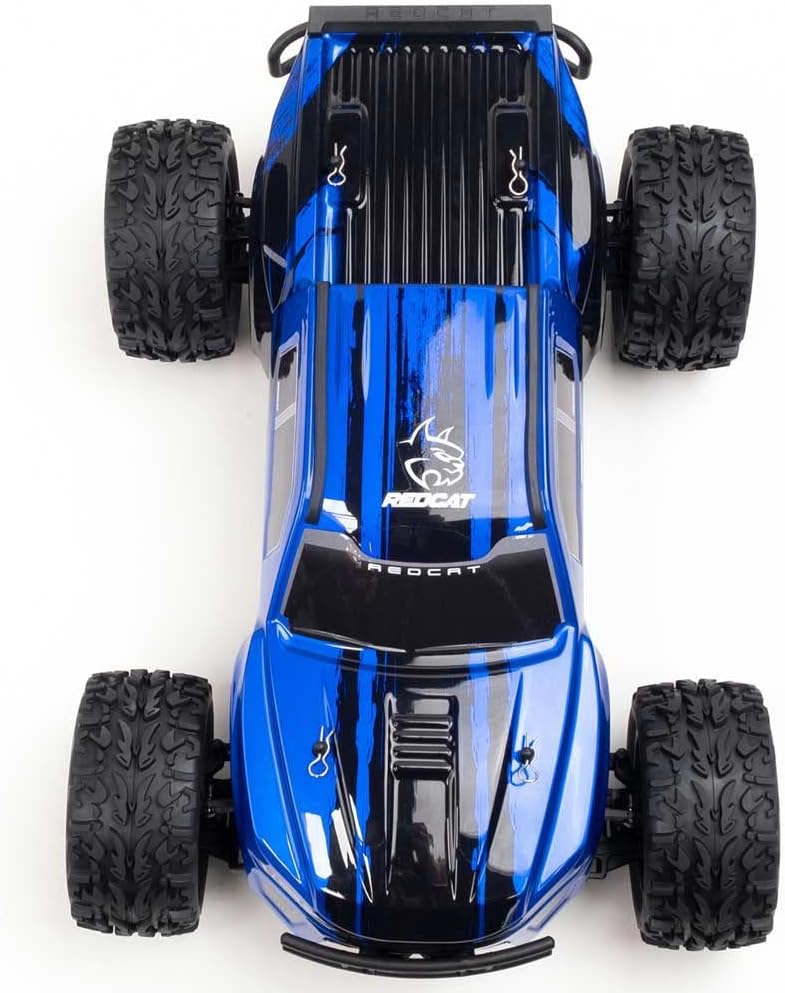 شاحنة مونستر رباعية الدفع مع إطارات شاحنة مونستر كبيرة، هيكل بلاستيكي مصبوب خفيف الوزن، (8) صدمات مملوءة بالزيت من الألومنيوم، فروق تروس أمامية وخلفية، محامل في جميع الأنحاء.