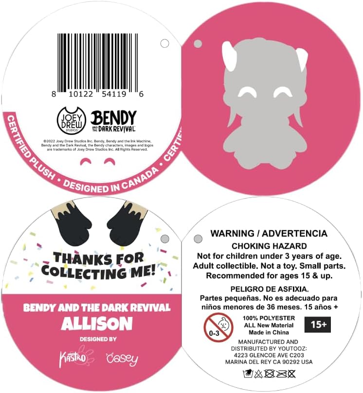 عبوة Youtooz Bendy and the Dark Revival: يبلغ طول هذه القطيفة 9 بوصات ويتم شحنها في صندوق بريد مقاوم للماء مصنوع خصيصًا باستخدام المواصفات التي صنعتها Youtooz لتوفير أقصى قدر من الحماية من العناصر.