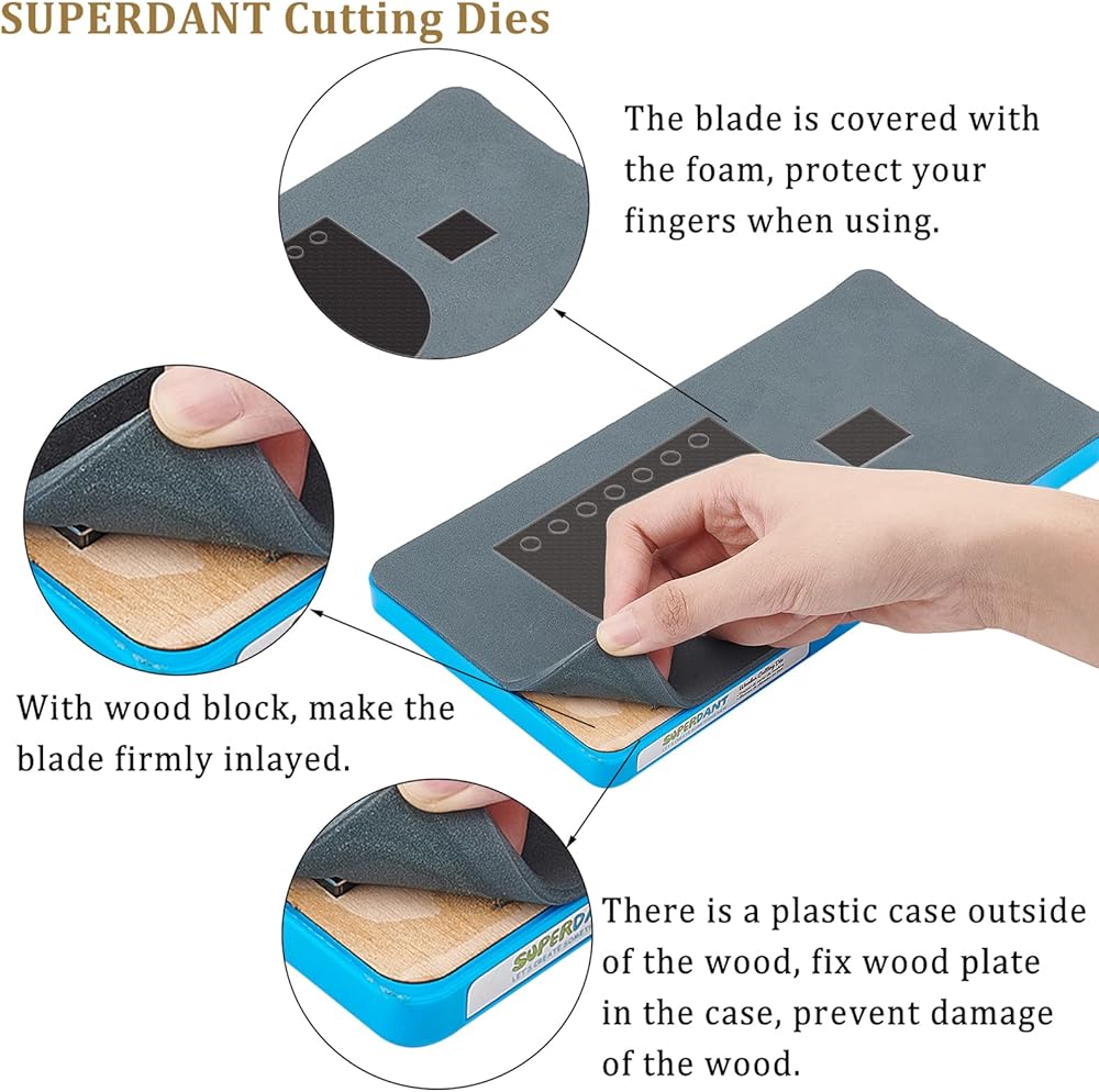 تفاصيل المقاس: كما هو موضح في الصورة، يبلغ حجم قالب القطع حوالي 5.9x5.9 بوصة/15x15 سم. المقاس التفصيلي يرجى الرجوع إلى صور المقاسات. يبلغ سمك المنتج الإجمالي 17 مم، ويشمل هذا الحجم لوحًا بلاستيكيًا مقاس 13.6 مم مع رغوة EVA مقاس 4 مم. حجم اللوحة السفلية الخشبية 9 مم، والشفرة 12 مم.