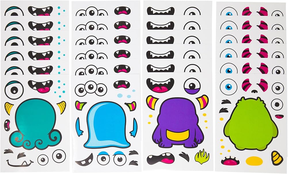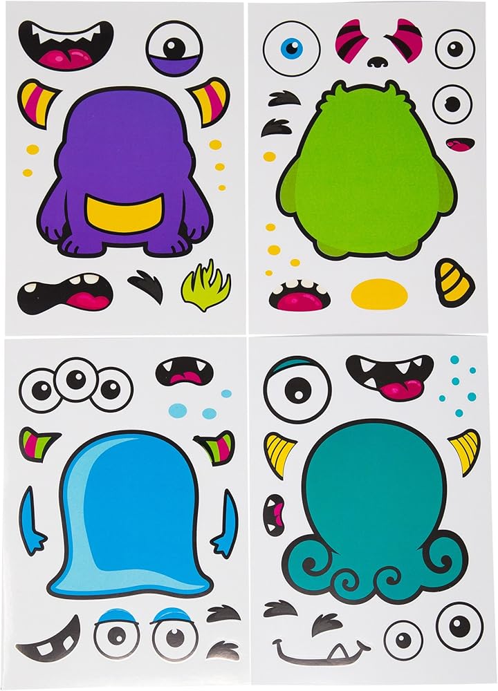 24 ملصقًا لـ Make A Monster للأطفال - هدايا ومستلزمات حفلات أعياد الميلاد بطابع Monster - مشروع حرفي ممتع للأطفال بعمر 3 سنوات فما فوق - اسمح لأطفالك بالإبداع وتصميم ملصقات الوحوش المفضلة لديهم