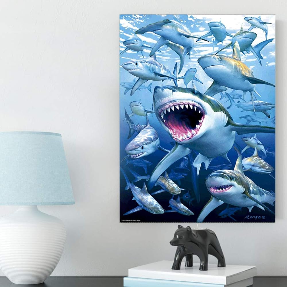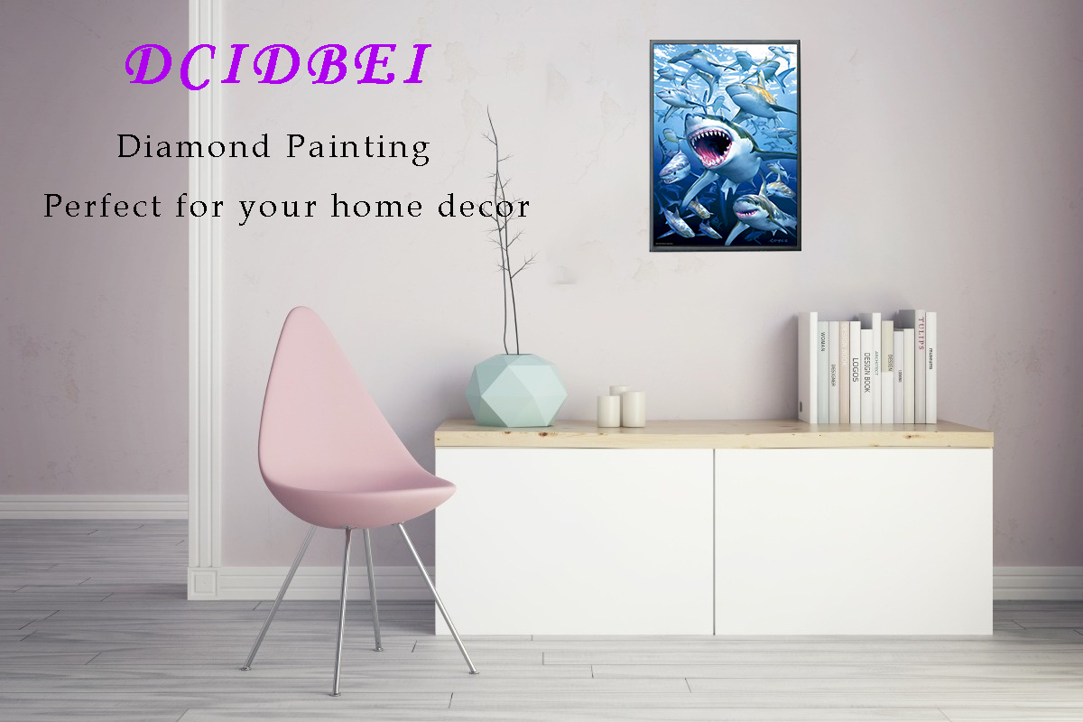 DCIDBEI حجر الراين الماس اللوحة ، DIY 5D الماس الطلاء بواسطة الرقم عدة لطيف القرش حجر الراين التطريز الصليب مجموعات الإمداد الفنون الحرفية قماش ديكور الحائط ملصقات ديكور المنزل 12x16 بوصة
