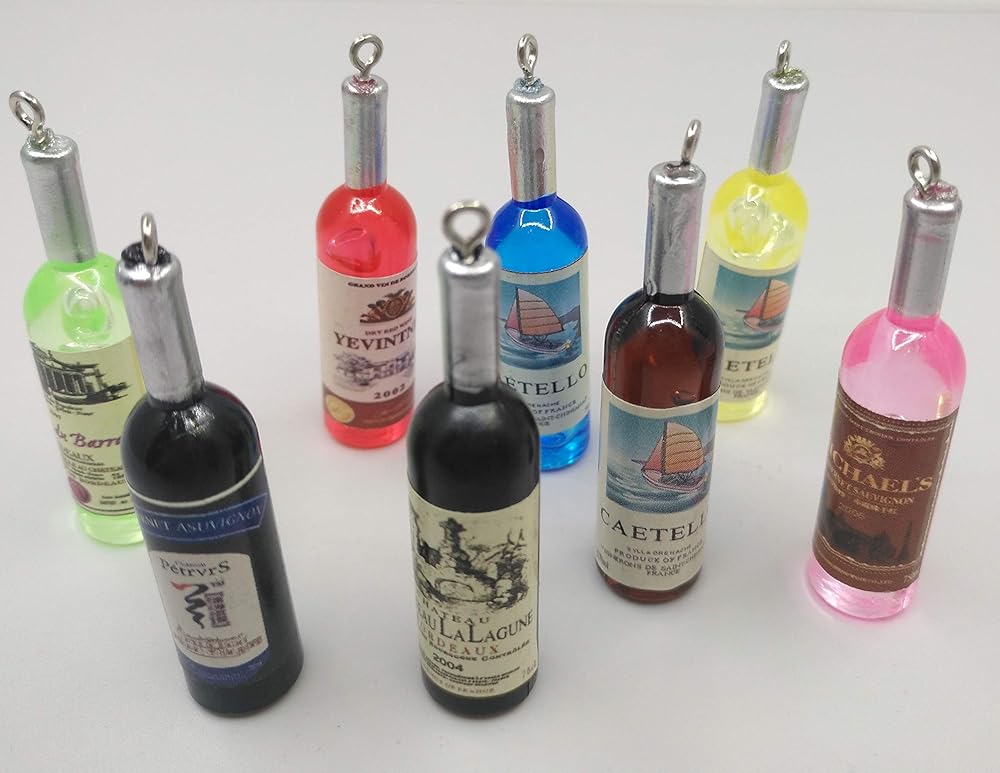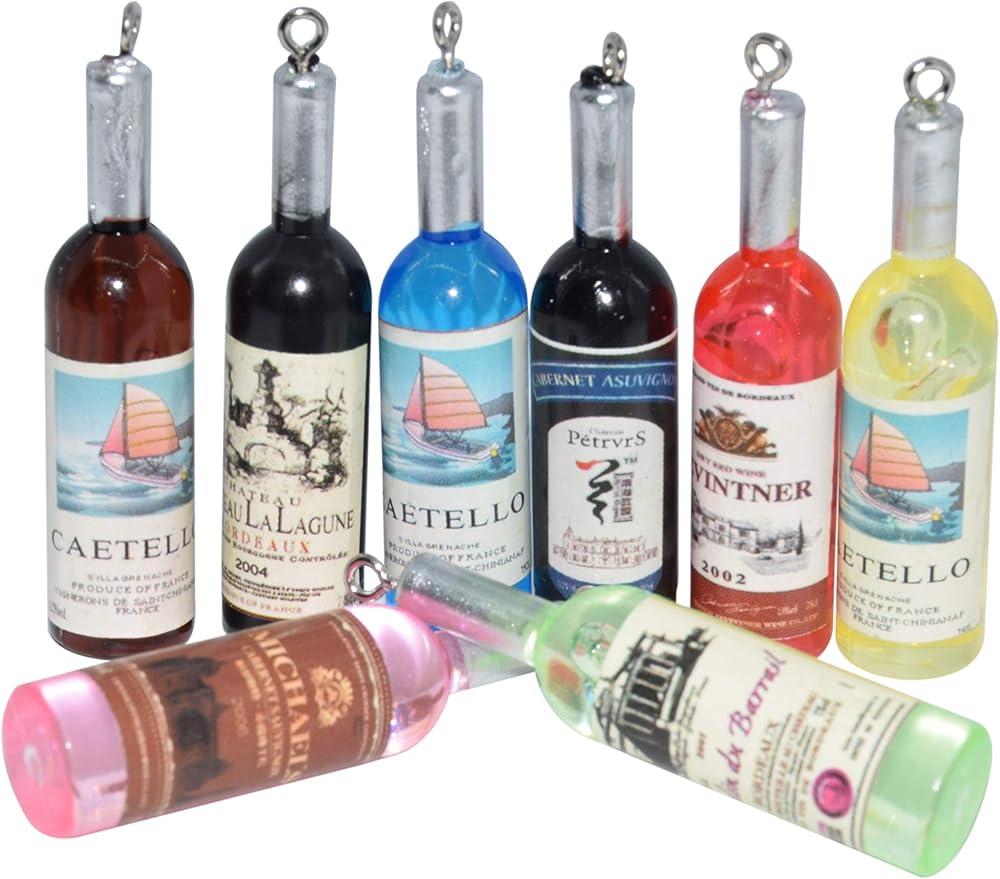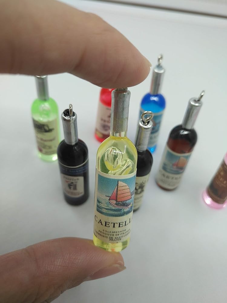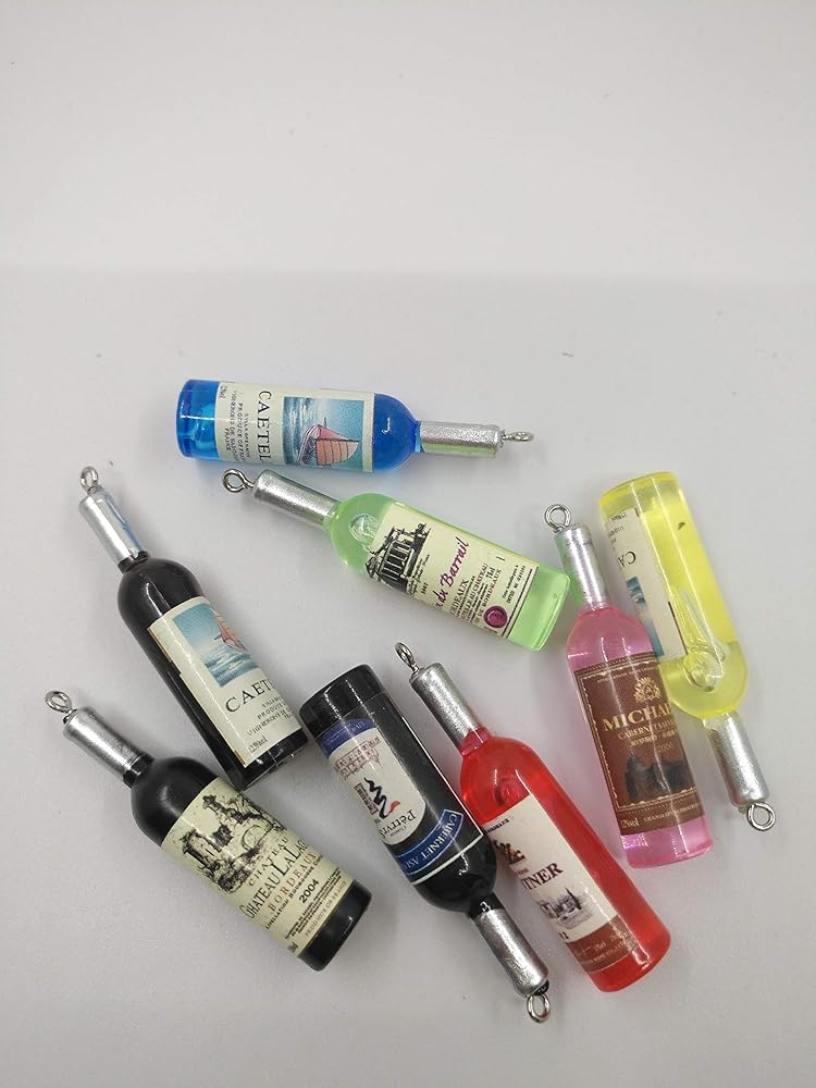 اموبيستر زجاجات نبيذ مصغرة ملونة لبيت الدمى، اكسسوارات مطبخ 8 قطع