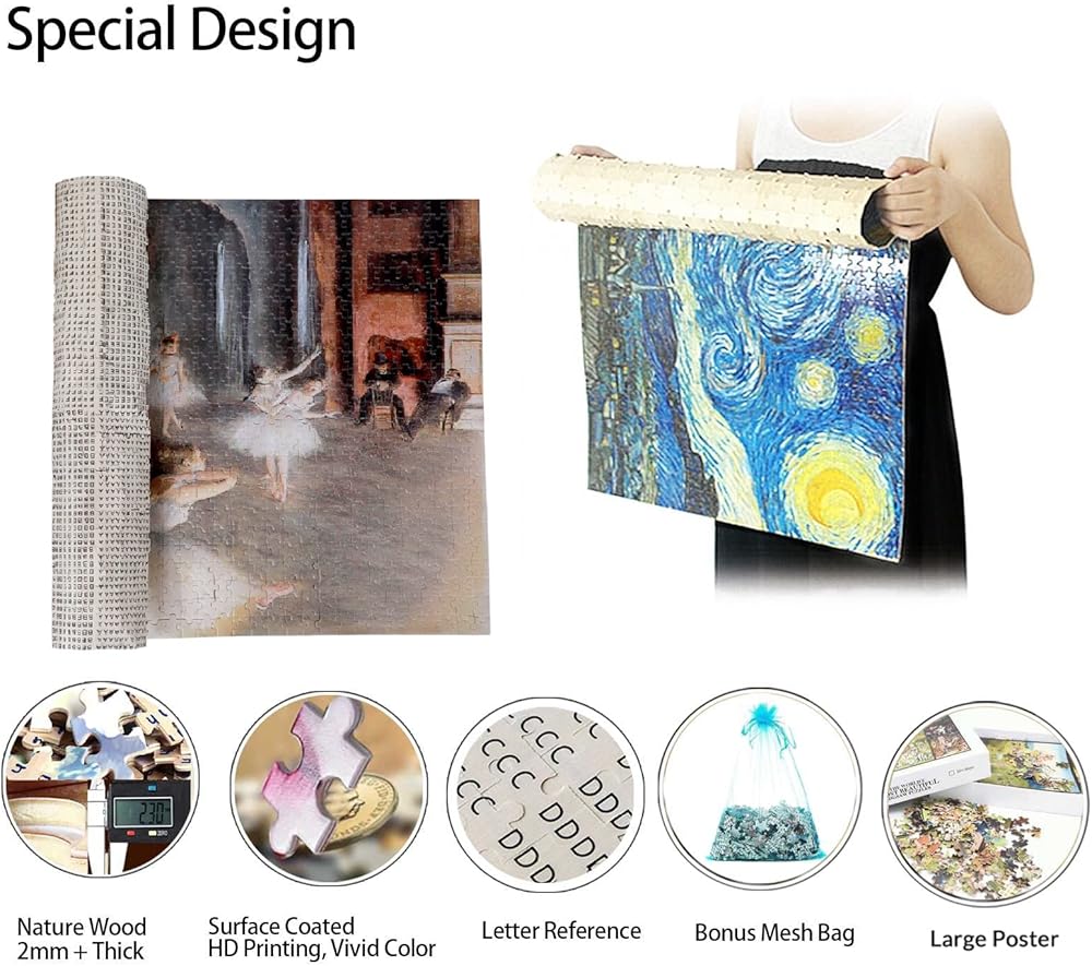 【لون زاهٍ وجودة عالية】الألغاز مصنوعة من تقنية الطباعة بالألوان الكاملة، واللون حيوي ومتين لفترة طويلة، استرخي أثناء استكمال هذه اللوحة الشهيرة بتفاصيل جميلة.