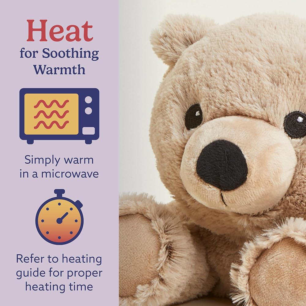 الولادة فما فوق. ابق دافئًا ومرتاحًا مع هذا الدب البني المخملي اللطيف والمحبوب القابل للاستخدام في الميكروويف من وارميز، ببساطة قم بالتسخين في الميكروويف وستحصل على صديق دافئ وقابل للعناق في وقت قصير. تتميز منتجات التدفئة برائحة اللافندر اللطيفة والمريحة. وقت دافئ 60 ثانية في الميكروويف 1000 واط. تعليمات التسخين موجودة على الملصق المخيط ويجب اتباعها بعناية فائقة. يجب استخدامه فقط تحت إشراف دقيق من البالغين. يبلغ طول الدب البني 13.