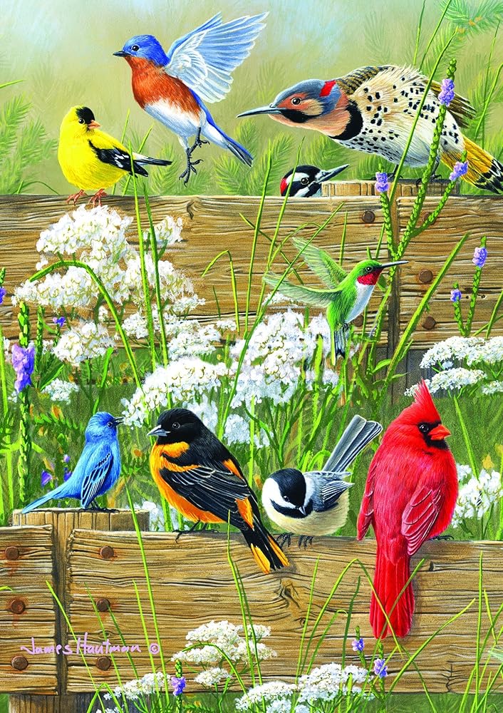 أحجية الصور المقطوعة المكونة من 300 قطعة، "سونج بيرد ميناجيري"، مبنية على الأعمال الفنية للفنانين المشهورين جيمس وروبرت وجوزيف هوتمان. ذا هوتمان براذرز هم فنانون مشهورون للحياة البرية ويعد عملهم جزءًا من مجموعة دائمة في معهد سميثسونيان. قطع هذه الأحجية أكبر بنسبة 67% من قطع الأحجية التقليدية، مما يجعل رؤيتها وحملها أسهل لتجربة أحجية ممتعة. يتم تصنيع كل أحجية جيغسو بافالو جيمز في الولايات المتحدة الأمريكية من لوحة أحجية معاد تدويرها. سناب مثالي مميز يتضمن أيضًا ملصق أحجية إضافي بحيث يكون لديك مرجع مفيد لما يجب أن تبدو عليه الأحجية المكتملة أثناء تجميع أحجية الأحجية معًا.