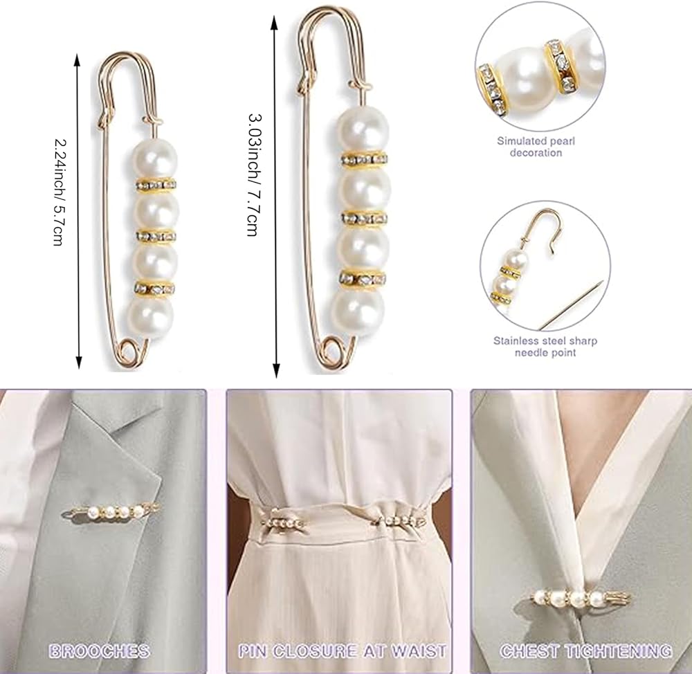 • 【Elegant & Versatile】-The Pearl Brooches included in this set are double faux pearl brooches, offering an elegant and stylish touch to your outfits. They can be used as sweater or shawl clips, adding a sophisticated and decorative element to your clothing. The double faux pearl design gives them a subtle and timeless look that can be worn for various occasions. These brooches can also be used as extender safety pins, providing a secure hold for pants or jeans that are too loose.
