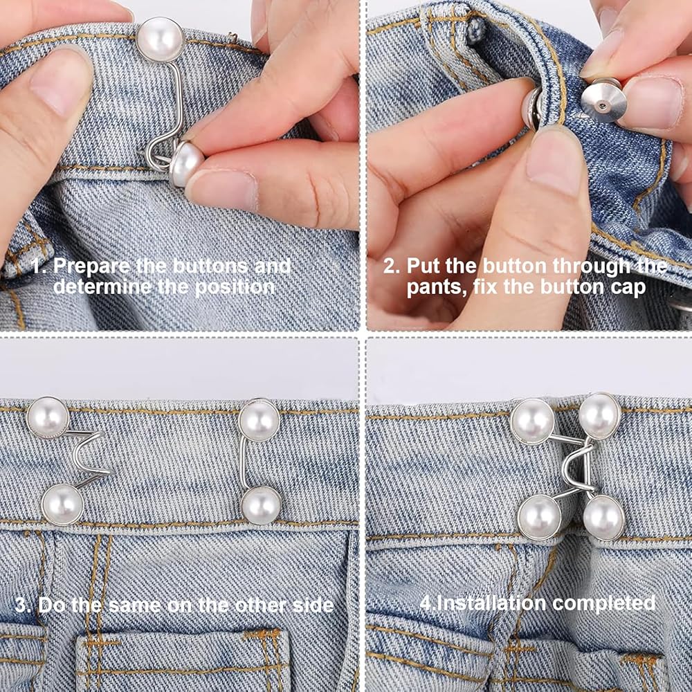 Each set includes 12 button pins, giving you plenty of options to customize the fit of your jeans and pants. The buttons come in a variety of stylish designs, including pearl brooches and faux pearls, making them a fashionable accessory as well.