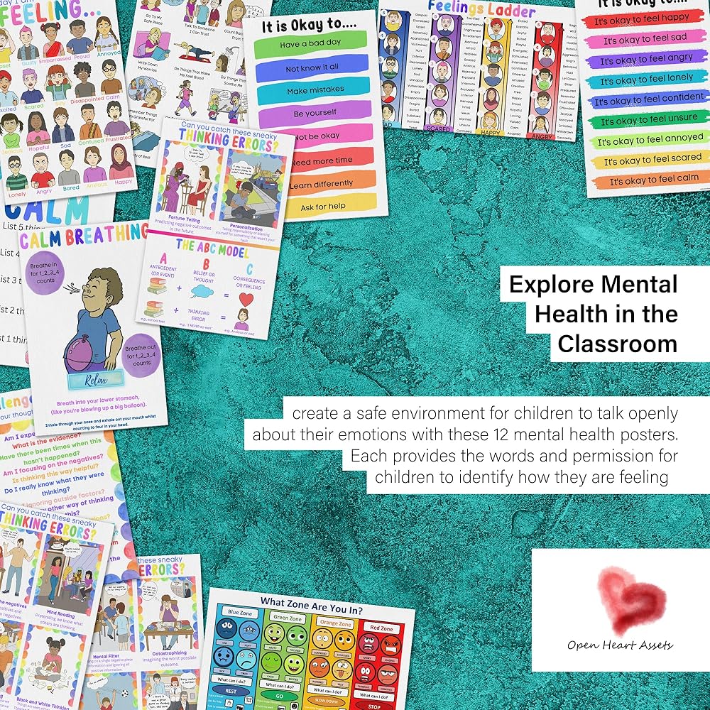 ديكور مكتب العلاج - كما أنه مصدر رائع لأي معالج يعمل مع الأطفال، أو ببساطة كديكور للصحة العقلية في مكتب العلاج. هذه البوسترات التعليمية الملونة ضرورية للزاوية المهدئة.