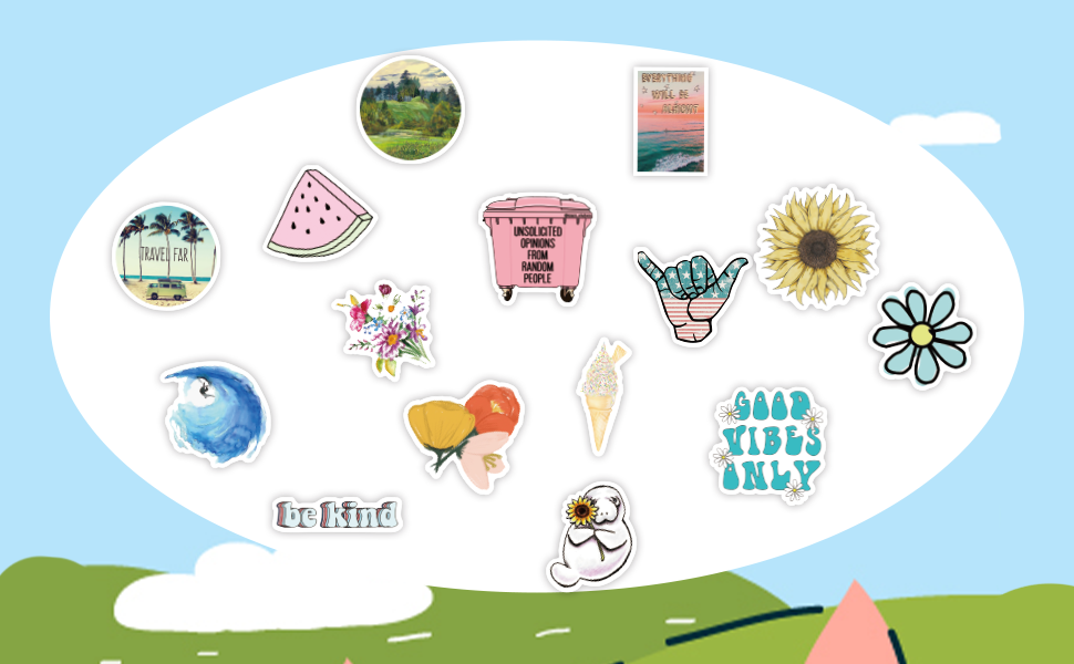【HIGH QUALITY】All cute aesthetic stickers are made of high quality vinyl material, waterproof, sunproof and durable. In addition, 100% HD printing technology ensures clear patterns and vibrant colors to enhance your experience. No matter how you toss these cute stickers, they are not easy to fade or peel off.
