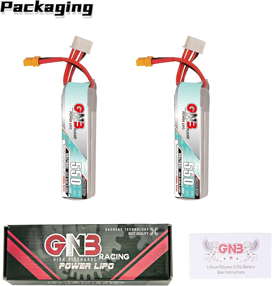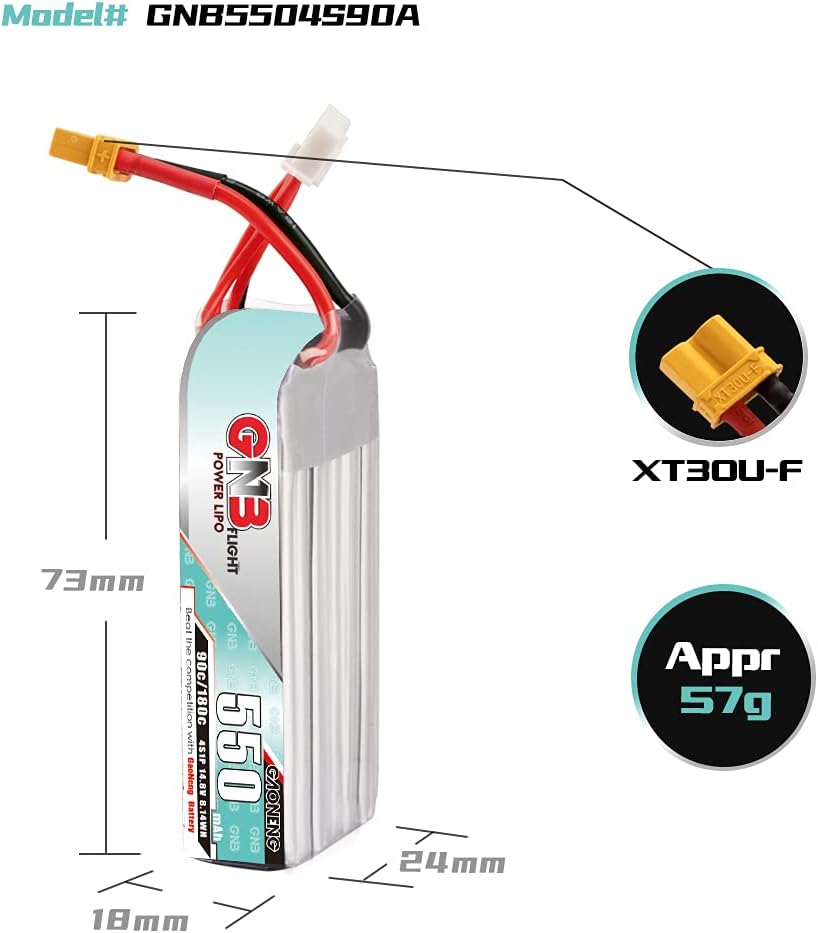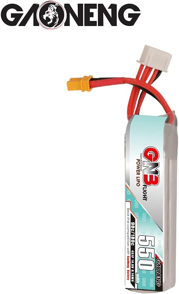 【Application】- GAONENG GNB LiPo Battery 4S 550mAh 14.8V 90C with XT30 Connector is suitable for Beta95X, Beta85X, Beta75X, Toothpick Drone, CineBee, Cine Whoop, Cinelog, Cinewhoop, Indoor FPV, Spare RC Parts, RC Toy, Airplane, Racing FPV, Brushless Drones, Mini Drone, Quads, Quadcopter, whoops, Helicopter, 2 to 3 inch Drone, Mini Micro FPV, Freestyle Drone, Accessories Parts, UAV, Aerial Model, DIY FPV etc.