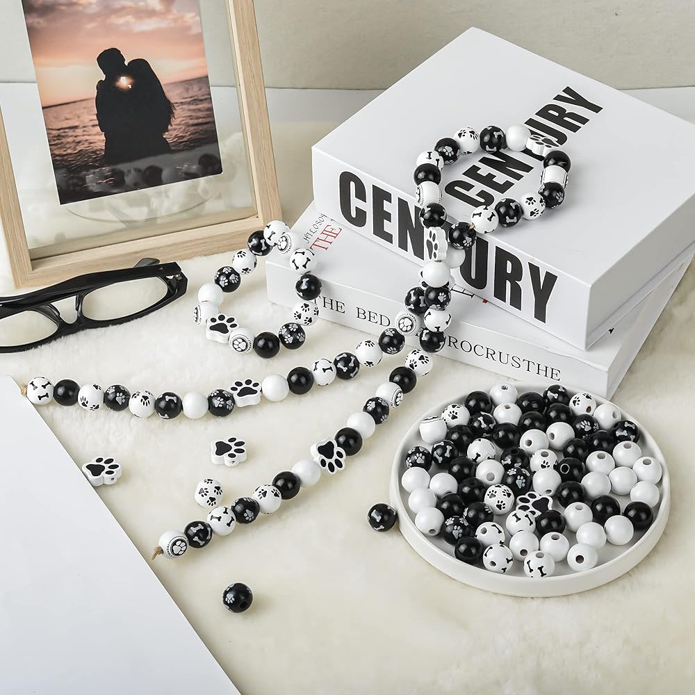 • تصميم لطيف: نحن جميعًا نحب الحيوانات الأليفة، طباعة أقدام المخالب والعظام على الخرز الأسود والأبيض هي محاولة جديدة، يتم إقران الألوان الأساسية والأنماط الفريدة لتقديم أنماط جديدة جميلة ورائعة، مما سيجعل ديكورك أكثر إثارة للاهتمام