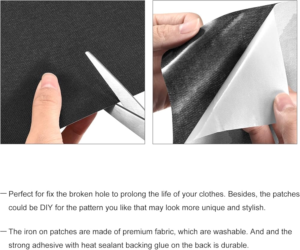 المكواة الموجودة على الرقع مصنوعة من قماش فاخر وقابل للغسل. كما أن المادة اللاصقة القوية مع غراء مانع للتسرب الحراري على الظهر متينة. يمكنك استخدام المقص لقص الرقعة بالحجم أو الشكل الذي تريده، ويمكن وضع الرقعة داخل الملابس أو خارجها. وتتوفر مجموعة متنوعة من الألوان لعمل الرقع بنفسك.
