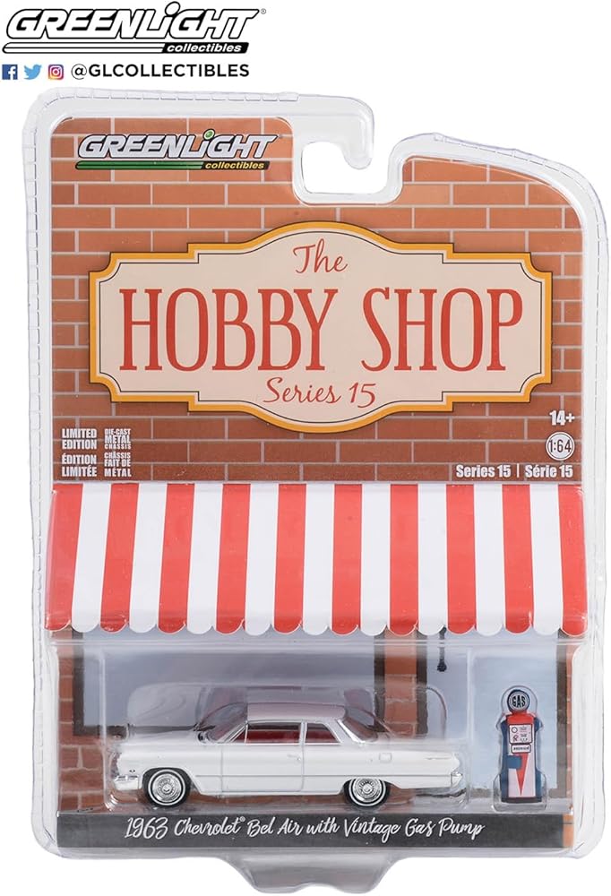 سلسلة متجر هوبي 15-1963 شيفروليه بيل اير من جرين لايت 97150-A مع مضخة غاز عتيقة بمقياس 1/64