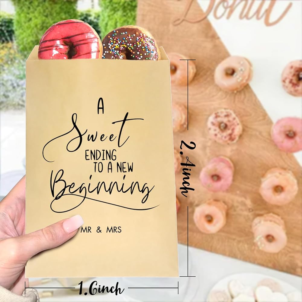 • A Sweet Ending to A New Beginning Wedding Favor Bags,The bags look great and will be perfect for the snack big Donut and Cookie,which will be a great personalized detail for Your wedding