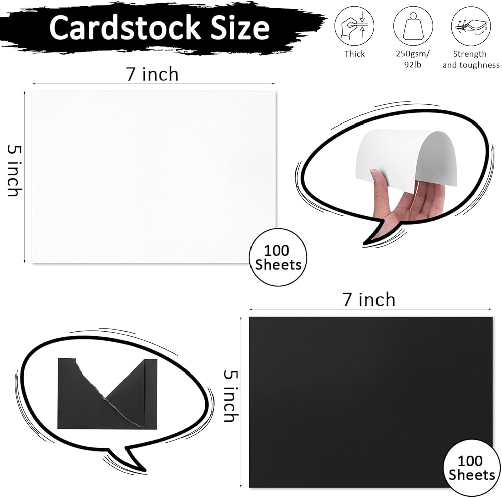 بطاقات باللونين الأبيض والأسود: 100 ورقة من ورق البطاقات البيضاء و100 ورقة من ورق البطاقات السوداء، مقاس 5 × 7 بوصات، رائعة لبطاقات الحرف اليدوية.