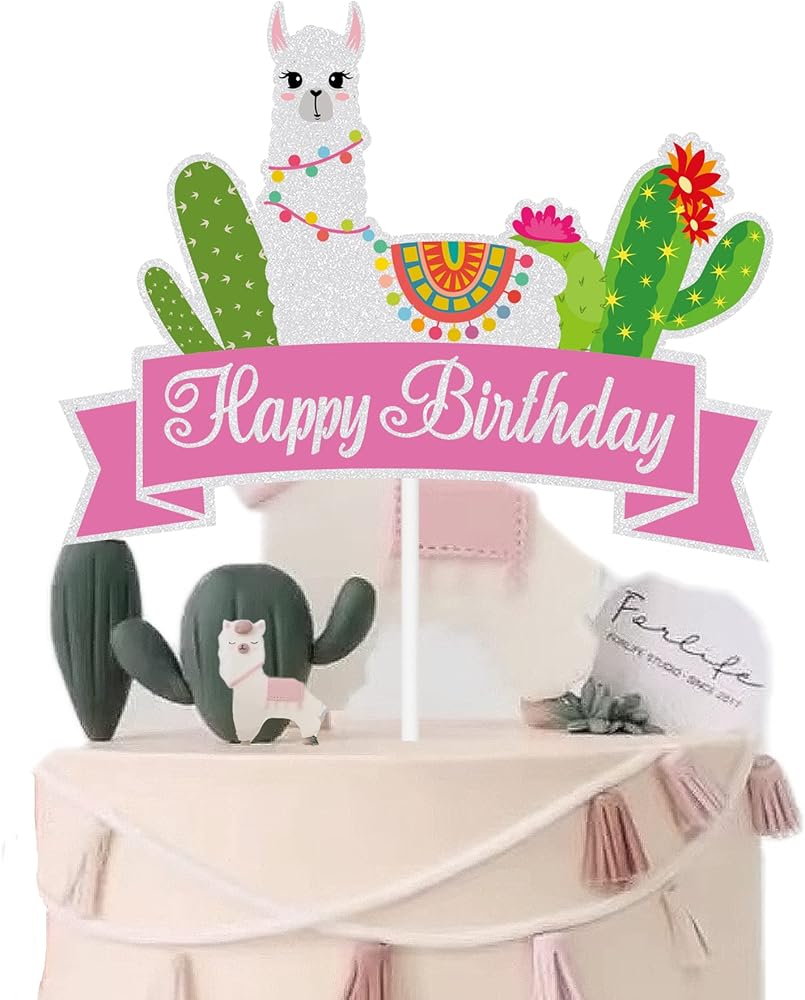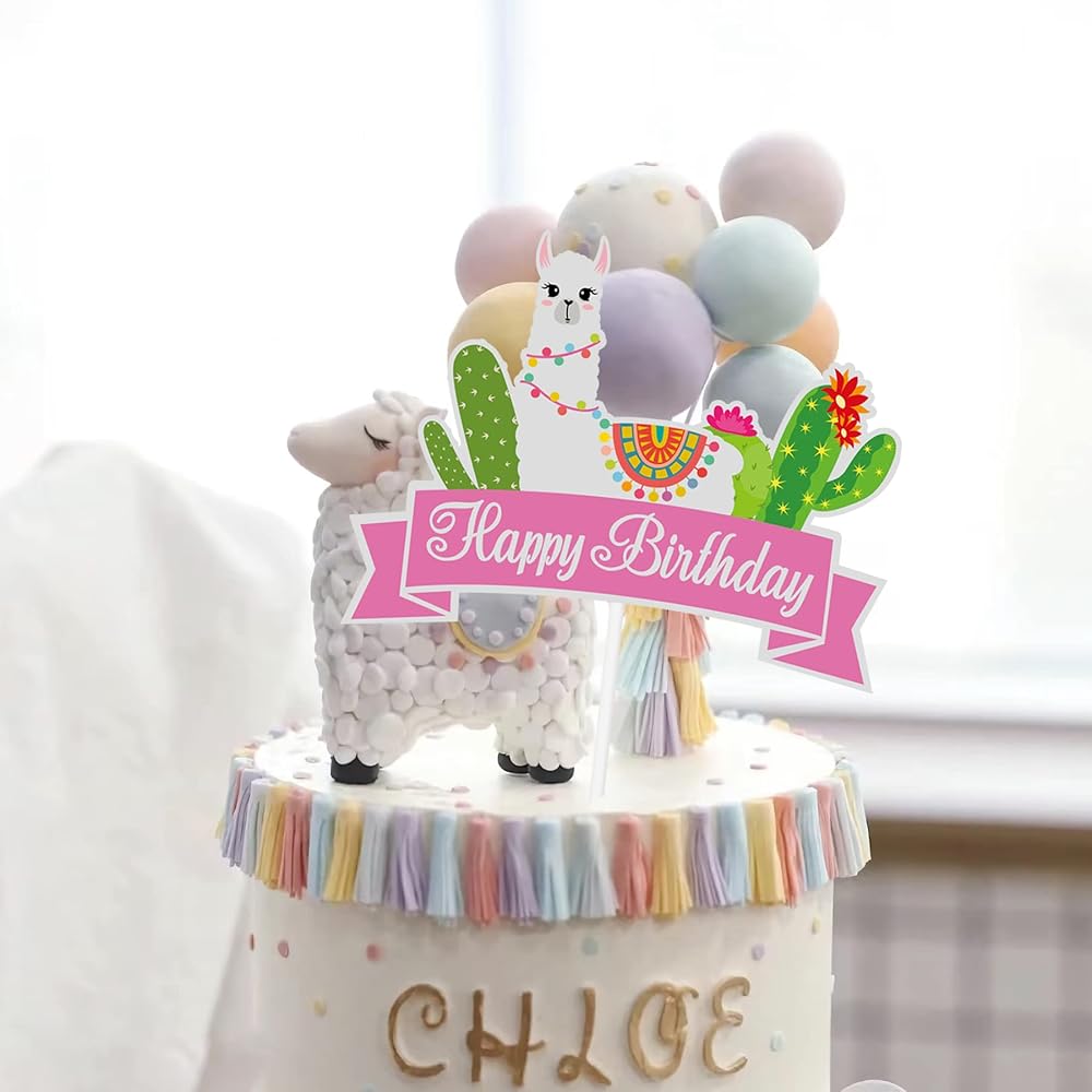 1 × غطاء كعكة عيد ميلاد لاما الصبار