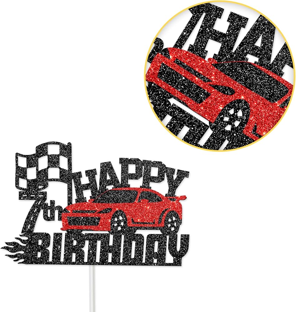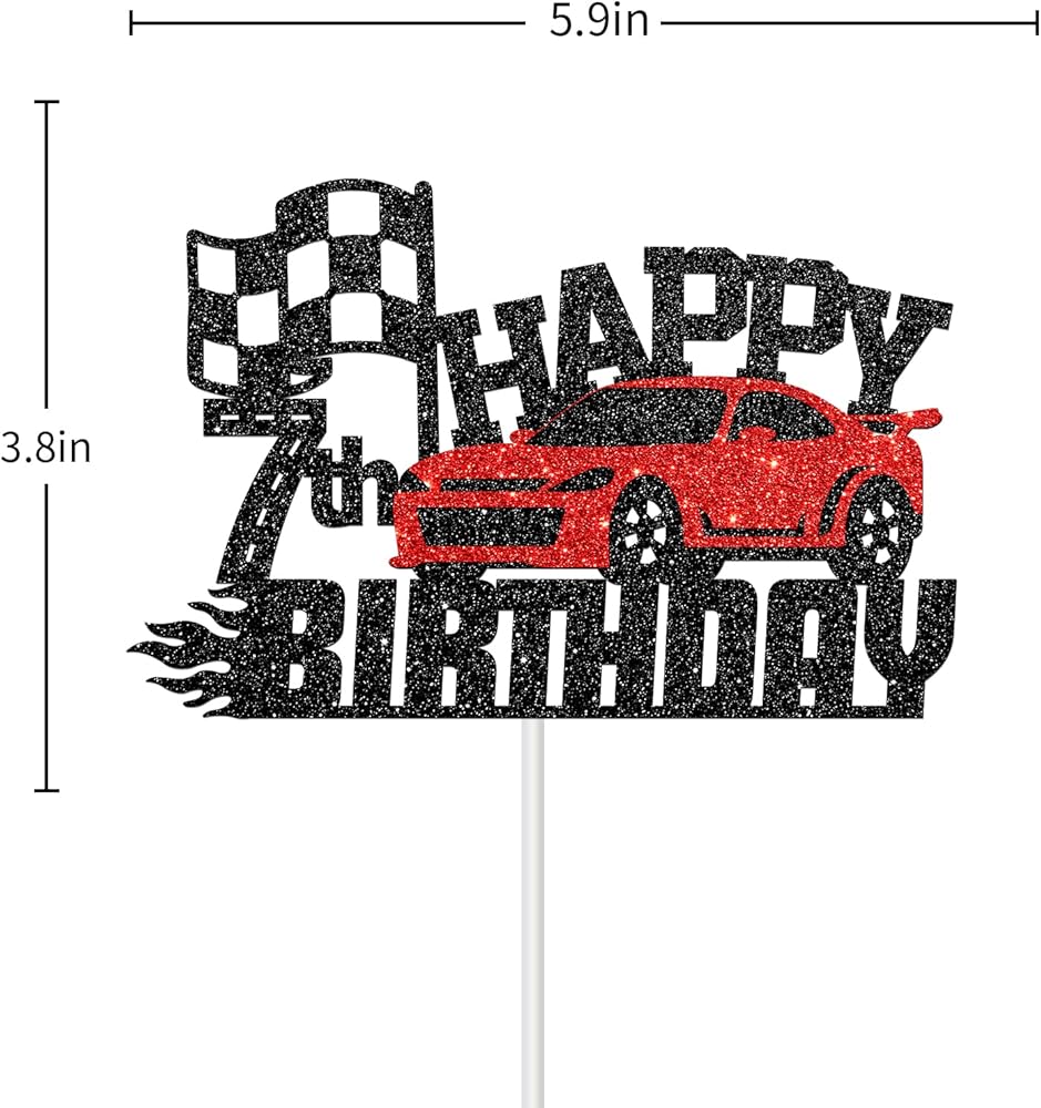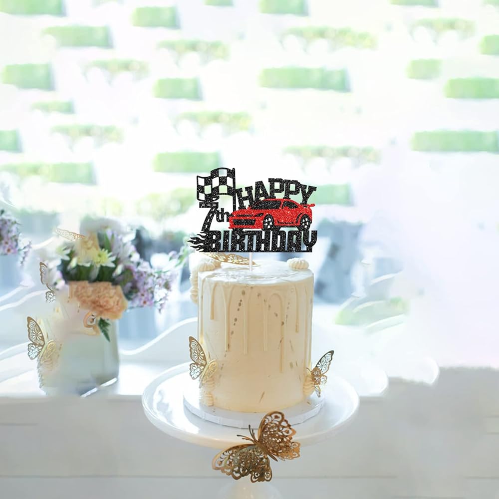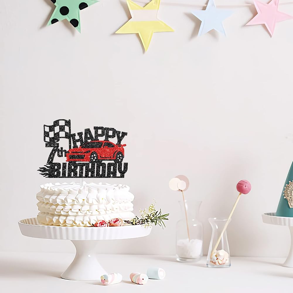 هلاواوا زينة كعكة عيد الميلاد السابع بتصميم سيارة سباق - زينة كعكة عيد الميلاد بطابع سيارة للاولاد والبنات بعمر 7 سنوات - لوازم تزيين حفلات اعياد ميلاد الاطفال