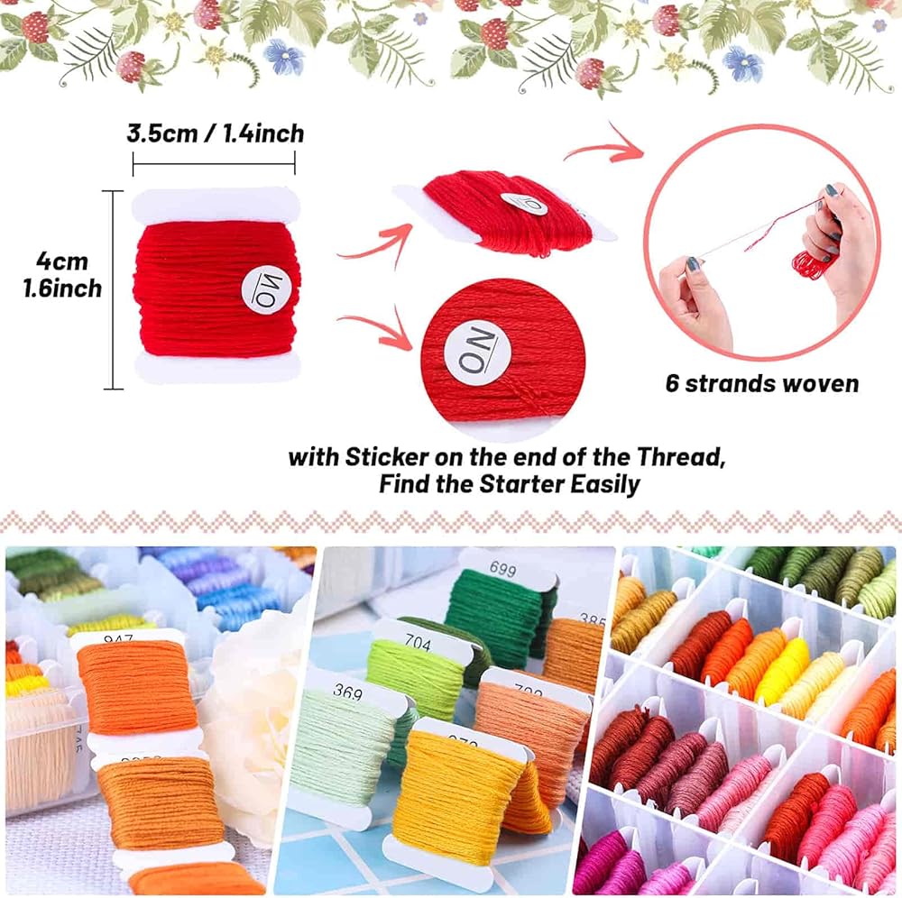 ألوان نابضة بالحياة - تأتي مجموعة خيوط التطريز بـ 108 لونًا مختلفًا، بما في ذلك 6 ألوان معدنية كافية لصنع أساور الصداقة وغيرها من المشاريع الحرفية المختلفة. كل بكرة ملفوفة مسبقًا تحمل رقم اللون المقابل، حتى تتمكن من العثور على الخيط الذي تحتاجه بسهولة وسرعة