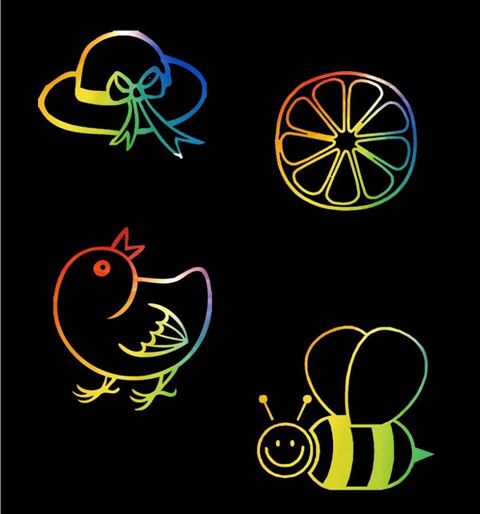 Gently scraping the black layer off the surface with a wooden pen will give off a colorful pattern.