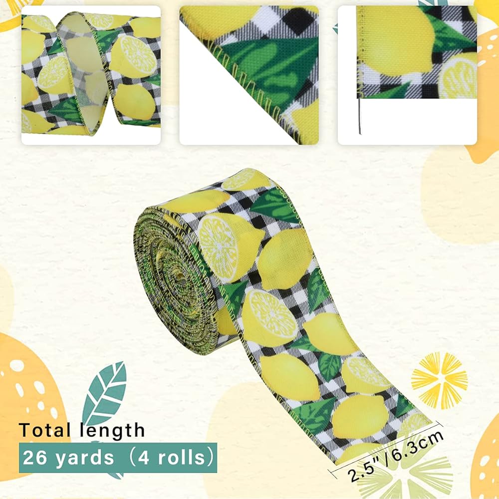 شريط بطول 32 ياردة بطول 32 ياردة من 4 لفات من الخيش الصيفي والقماش القطني والليمون لتزيين الحرف اليدوية وتغليف الهدايا واكاليل الزهور وربطات الشعر وديكور المنزل