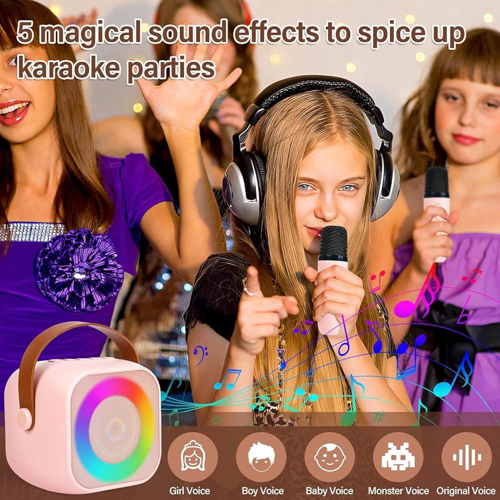حجم صغير وسهل الحمل: حجم مكبر الصوت 4.1*3*4.7 بوصة فقط، قطر مقبض الميكروفون 1.4 بوصة فقط، حتى فتاة تبلغ من العمر 3 سنوات يمكنها حمله بسهولة. جميع أركان آلة الكاريوكي والميكروفونات ناعمة ولها سطح أملس، مما يجعلها آمنة للاستخدام على الأطفال الصغار.