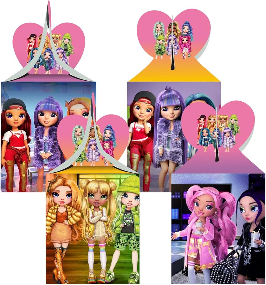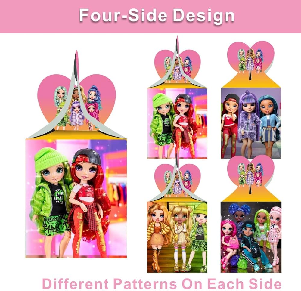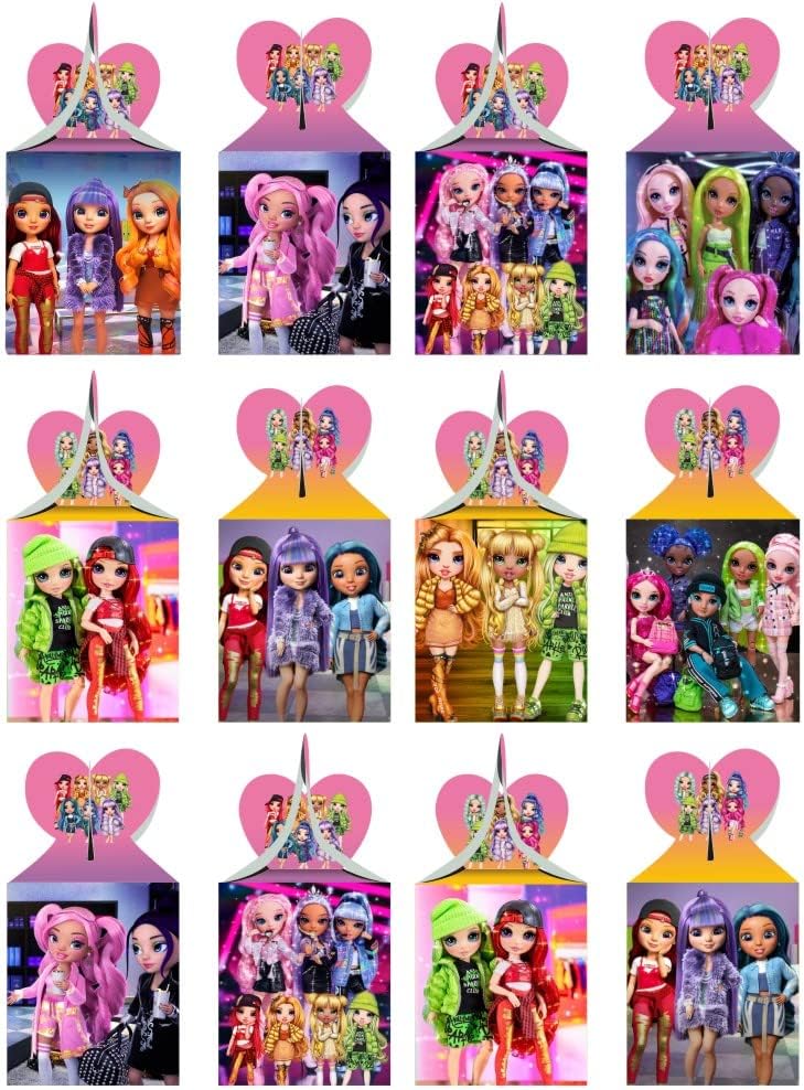 صناديق هدايا للحفلات بنمط دمى رينبو هاي من ميجيما، صناديق هدايا لدمى رينبو هاي الكرتونية، لوازم حفلات اعياد الميلاد، صناديق ديكور، صناديق حلوى