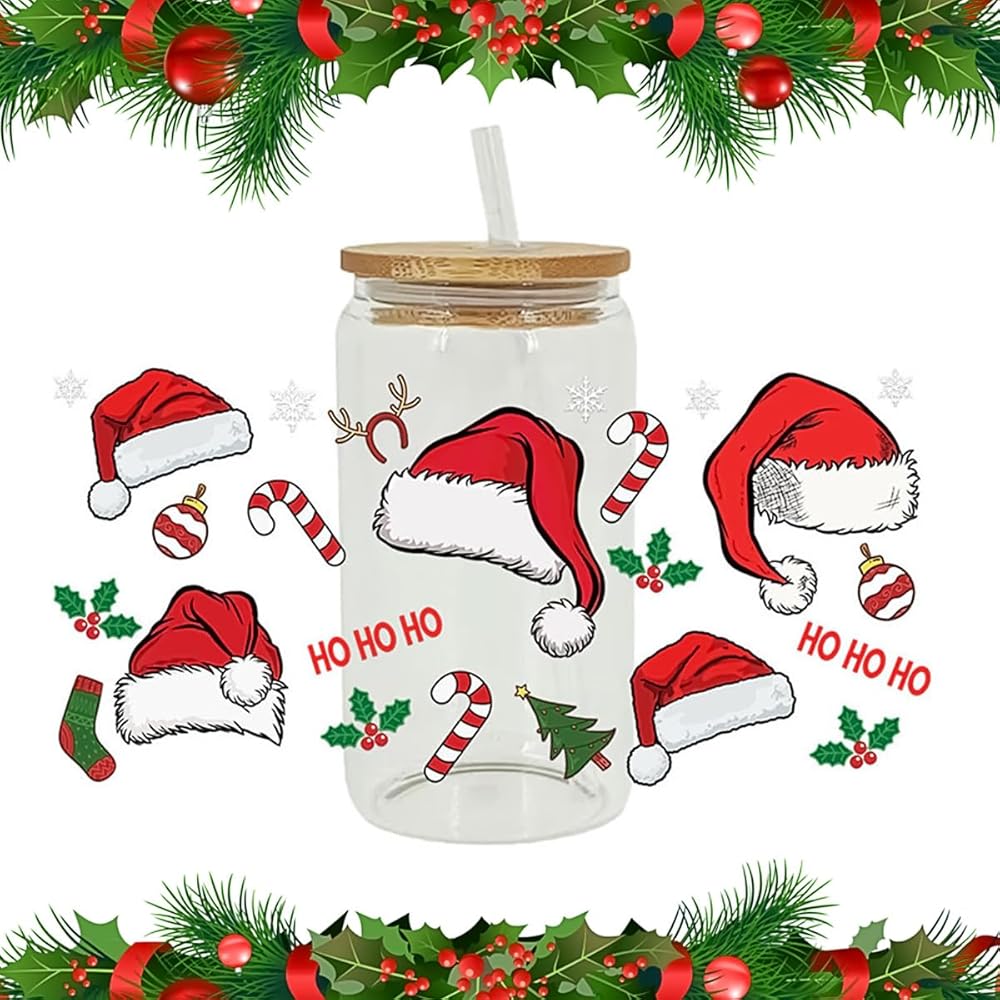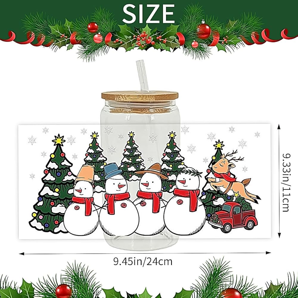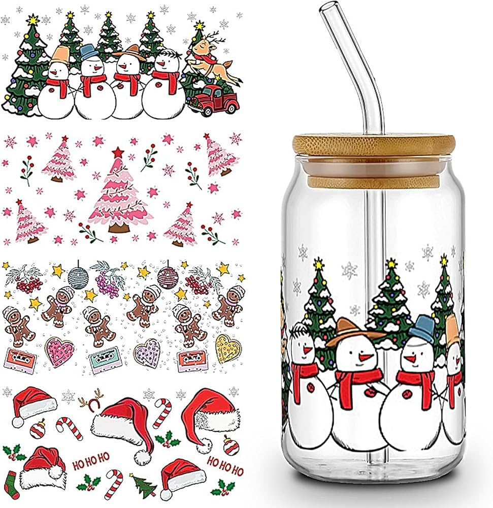 [ UV DTF Cup Wrap Transfer Stickers ] You will receive 4 sheets Christmas theme uv dtf cup wrap transfer stickers for glass, featuring snowman, Xmas tree, candy cane, Santa hat, and more vivid and fun patterns. The rub on transfers for crafts measure 9 x 4.3 inch, great for adding festival atmosphere, you can decorate your favorite items with these cup decal stickers.