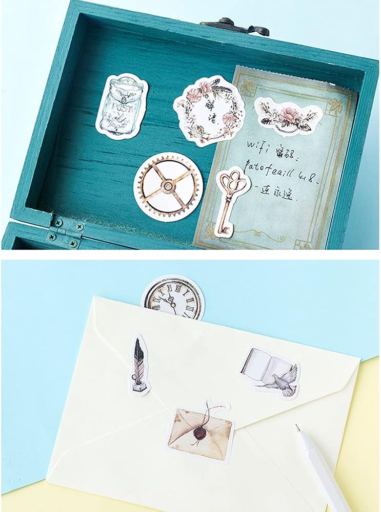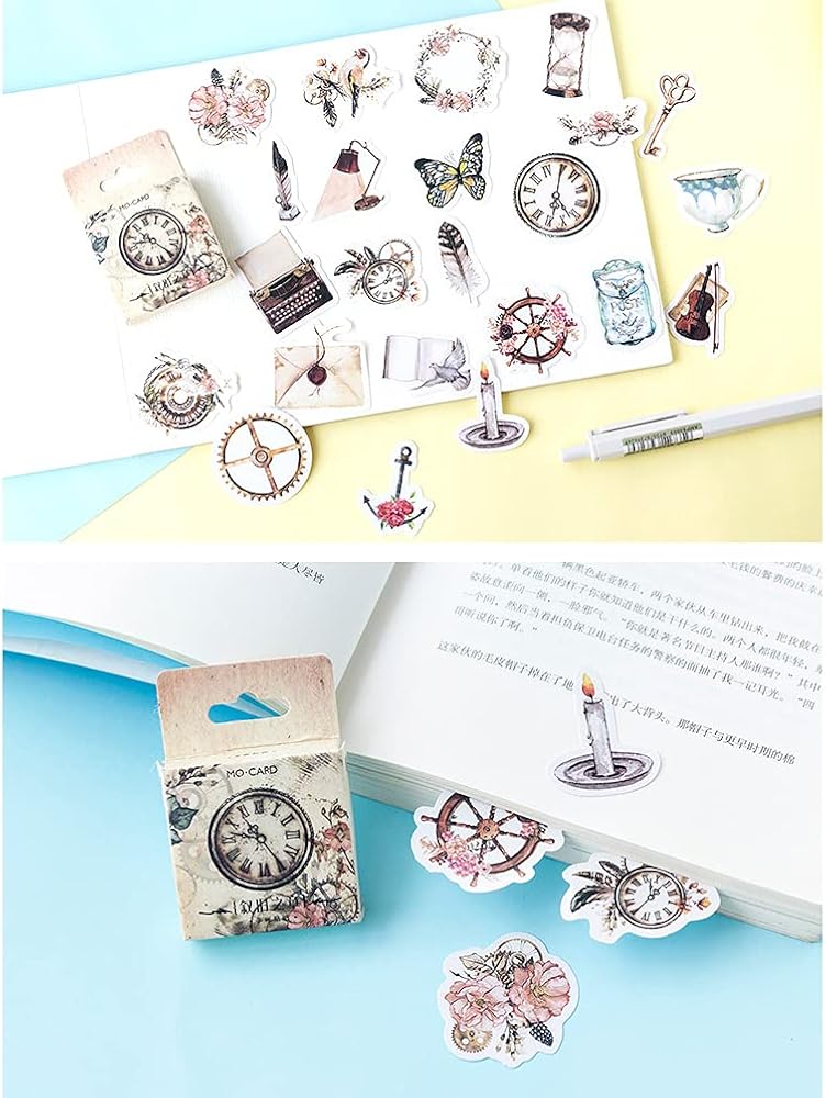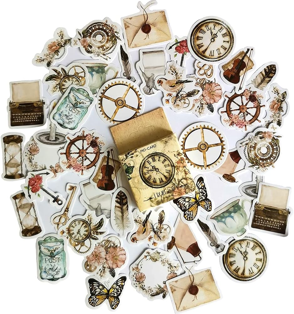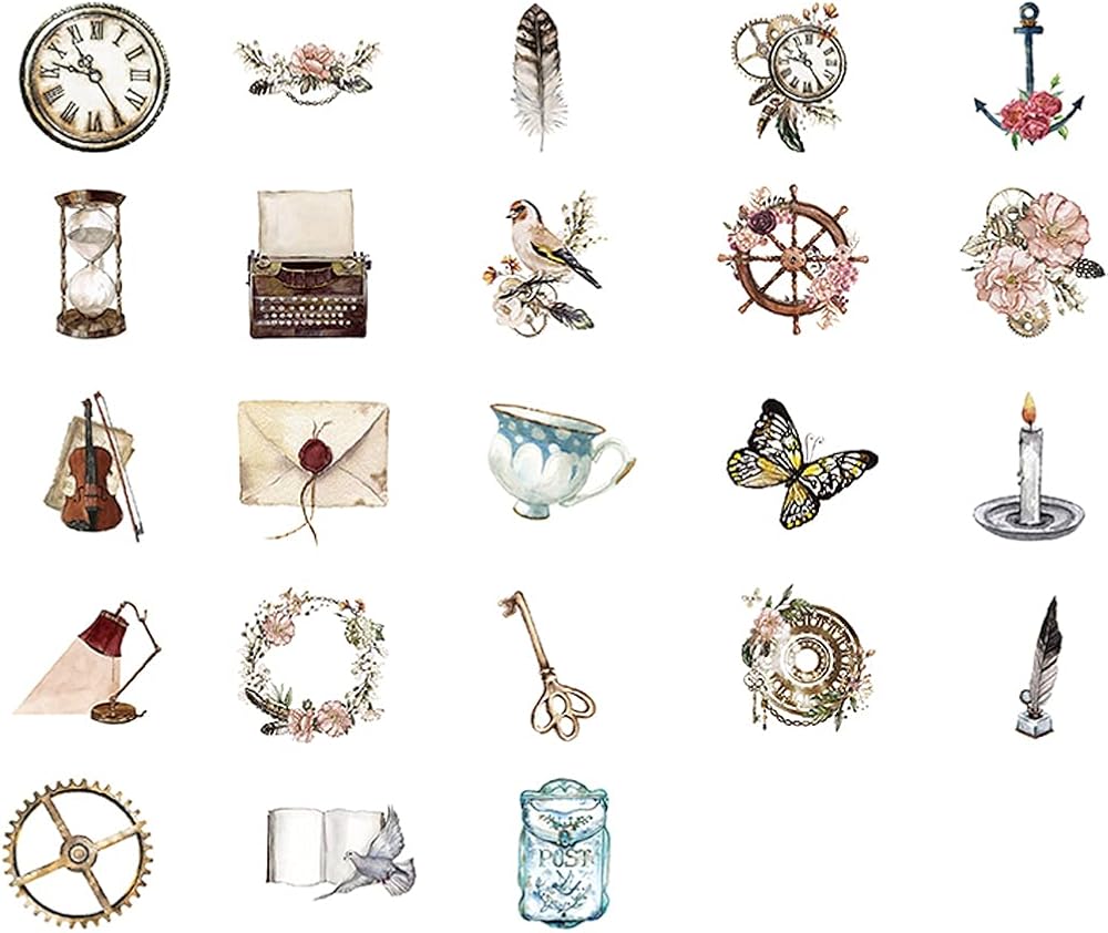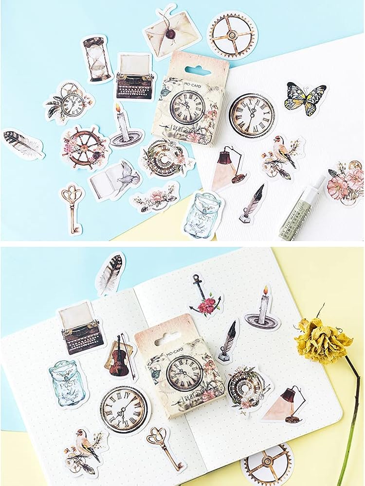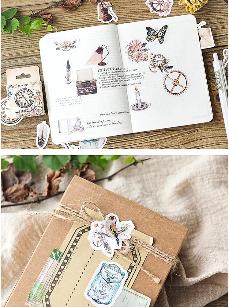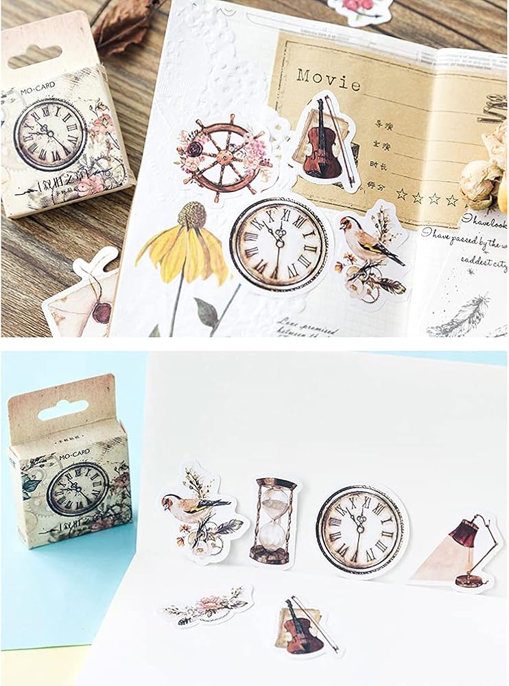 مجموعة ملصقات سكرابوكينغ ذاتية الصنع، اشياء عتيقة، اشياء عتيقة، طيور، جيب ساعة، مصباح ريش، ملصقات جيتار، ملصقات للابتوب والمظاريف، دفتر القصاصات، دفتر القصاصات، المخطط، البطاقات، صناعة الحرف الفنية