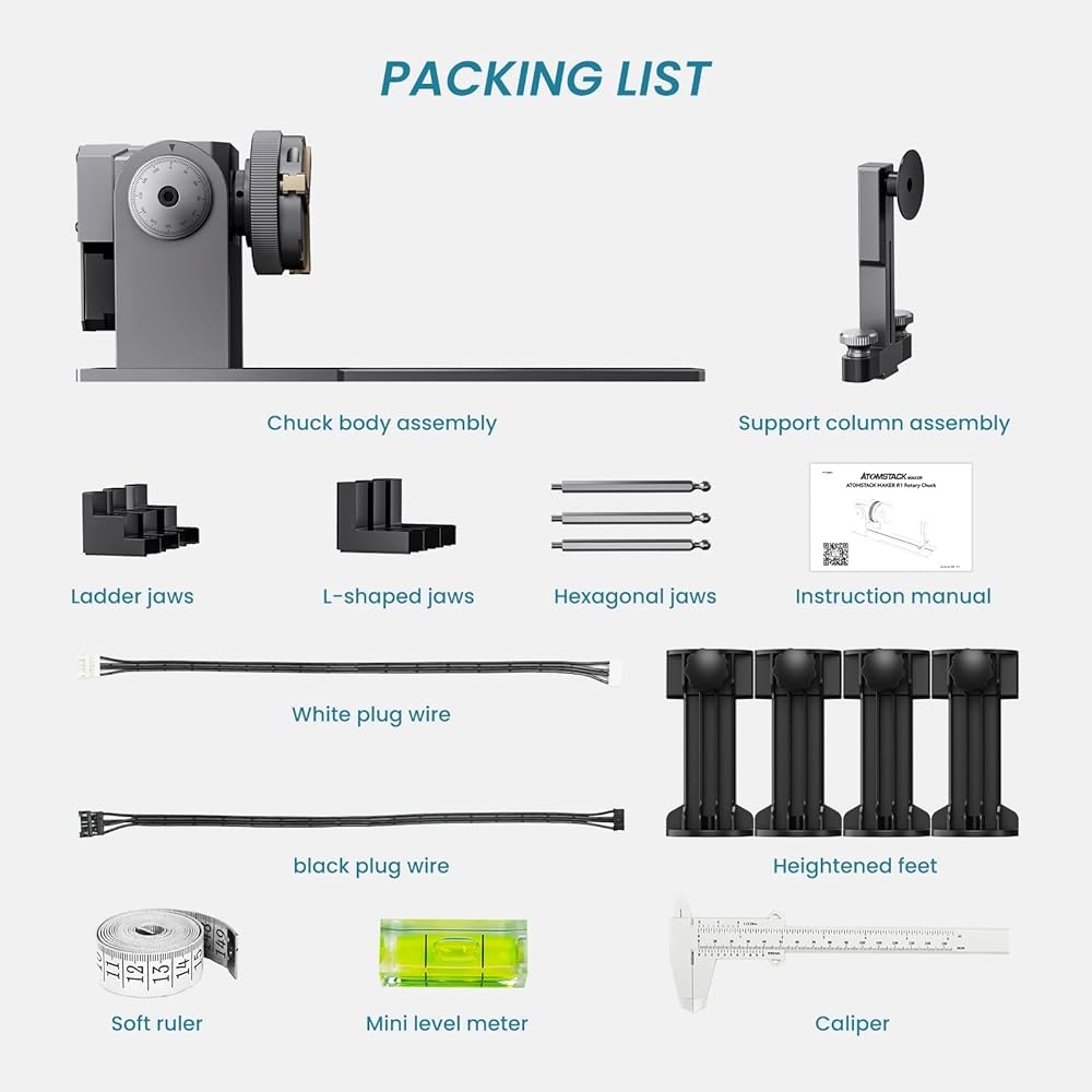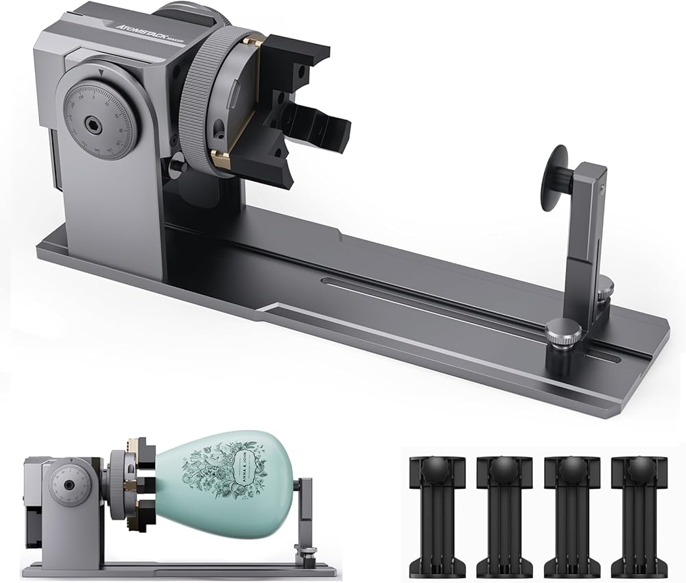 ATOMSTACK R1 PRO Laser Rotary Roller, 4-in-1 Laser Rotation Roller with Risers for Laser Engraver