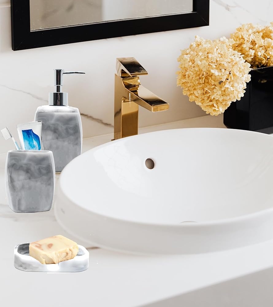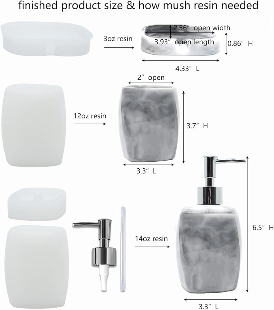【قالب كوب كبير من السيليكون】تحتاج تقريبًا 400 مل من الراتنج لموزع الغسول، تقريباً 354 مل من الراتنج لصنع كوب حامل فرشاة الأسنان تقريبًا: 85 جم من الراتنج لصنع طبق الصابون.