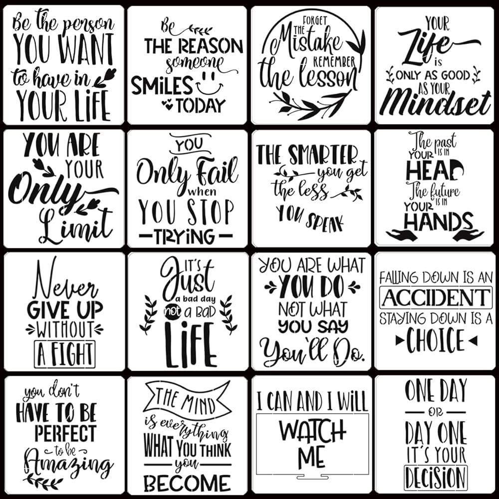 16 قطعة من استنسل الكلمات الملهمة، قوالب اقتباس للطلاء، قوالب اقوال العبارات، استنسل الكلمات الحرفية للرسم على ورق القماش والجدران الخشبية، استنسل لافتات المنزل قابل لاعادة الاستخدام 7.87 × 7.87 انش